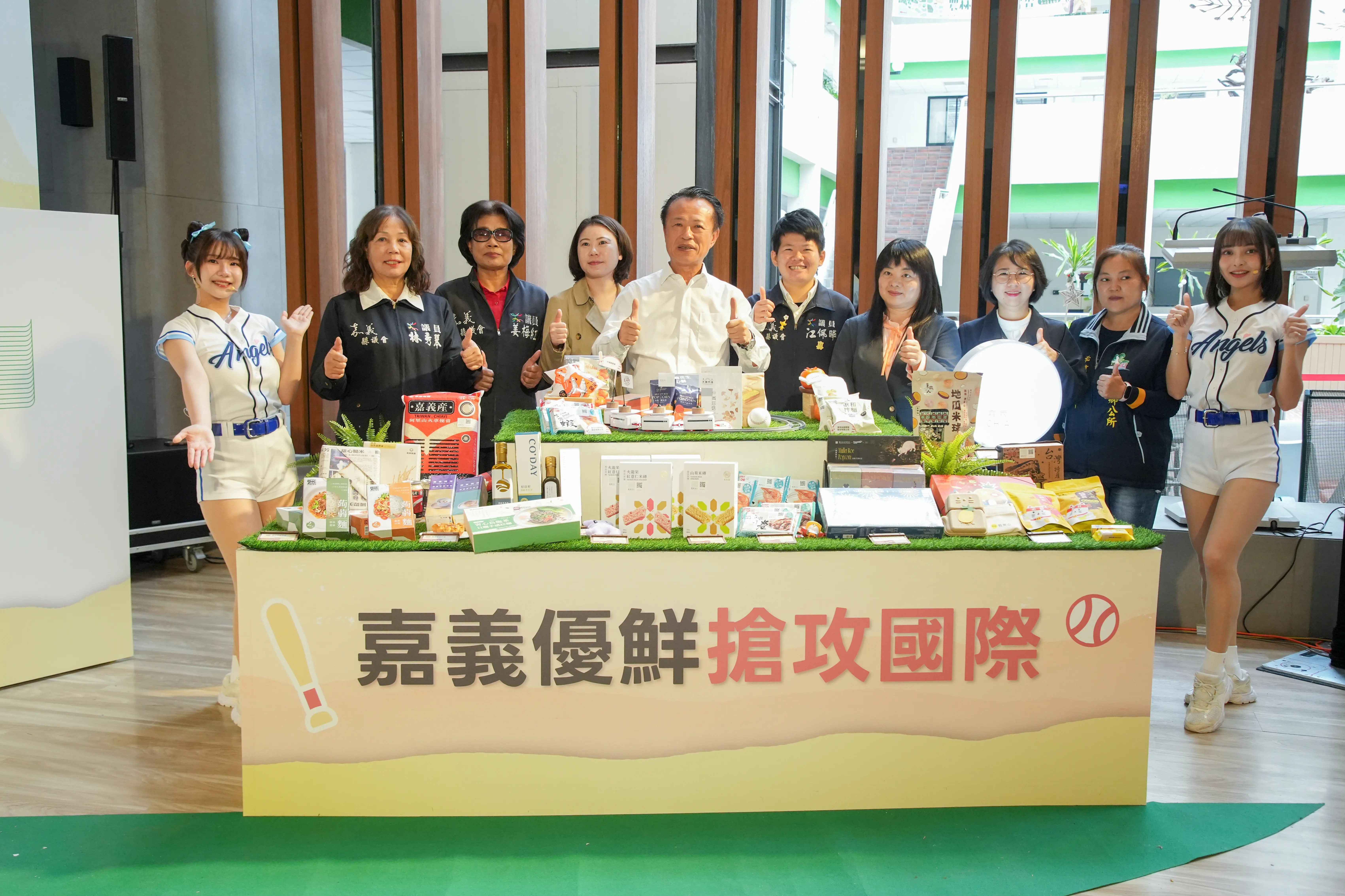 圖:翁章梁縣長與議員共同推廣嘉義優鮮參展商品。