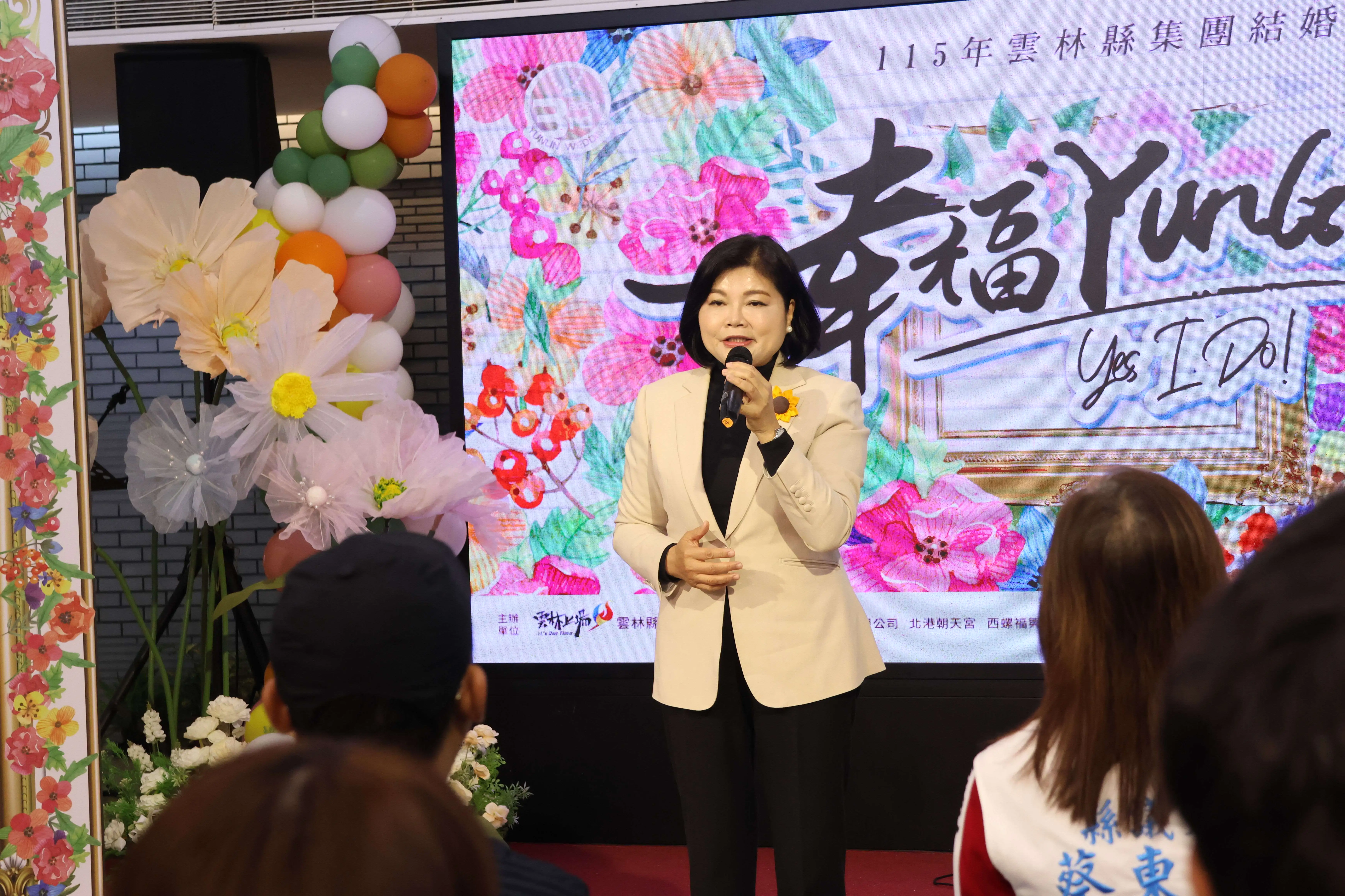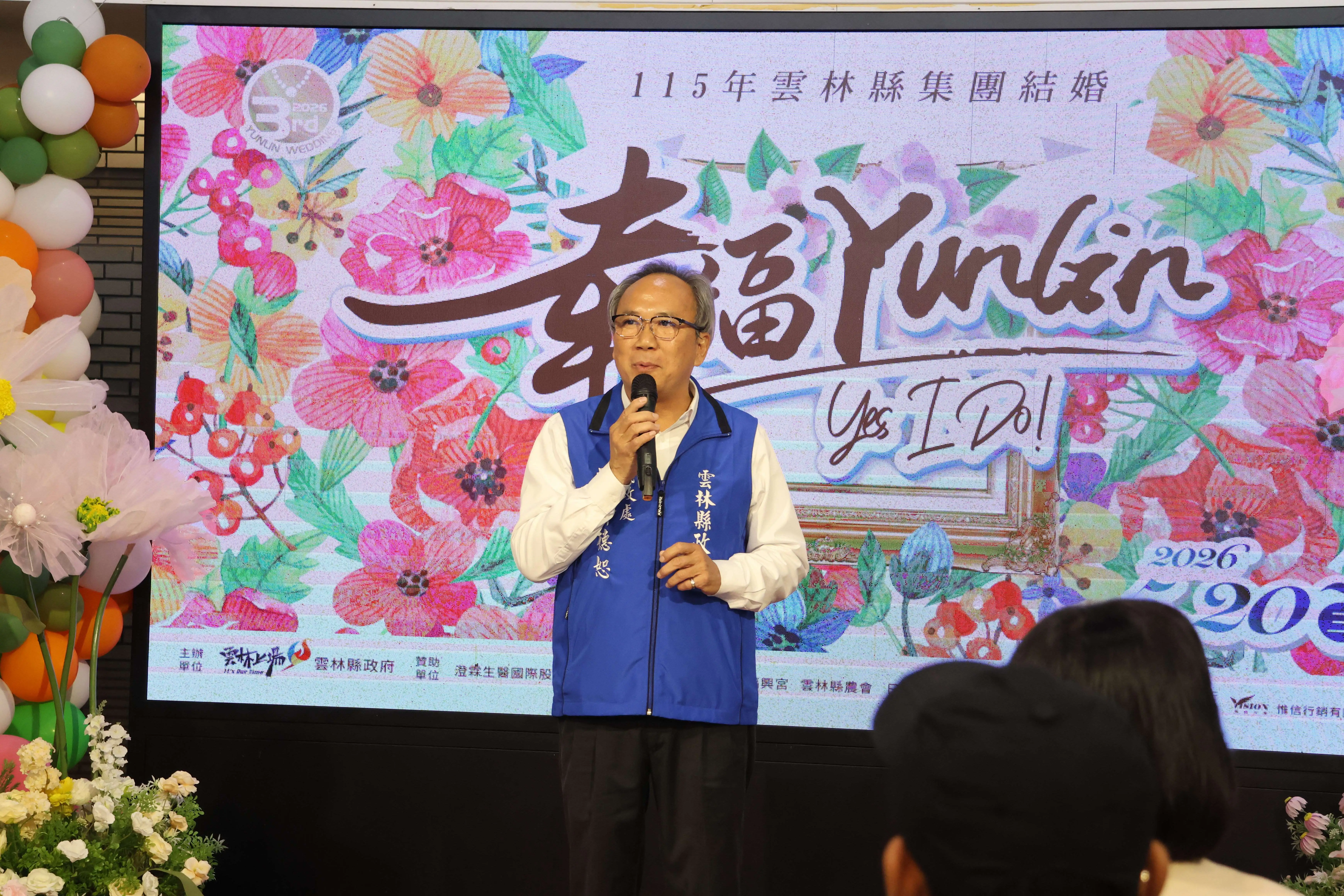 為鼓勵年輕朋友結婚生子,體驗不一樣的人生風景,雲林縣政府將於今年5月20日舉辦第三屆集團婚禮, 今(5)日上午並於縣府親民大廳舉行「2026雲林縣集團結婚報名宣傳」記者會,縣長張麗善邀請有情人把握機會,3月6日起上網報名參與,為自己留下浪漫難忘的回憶!