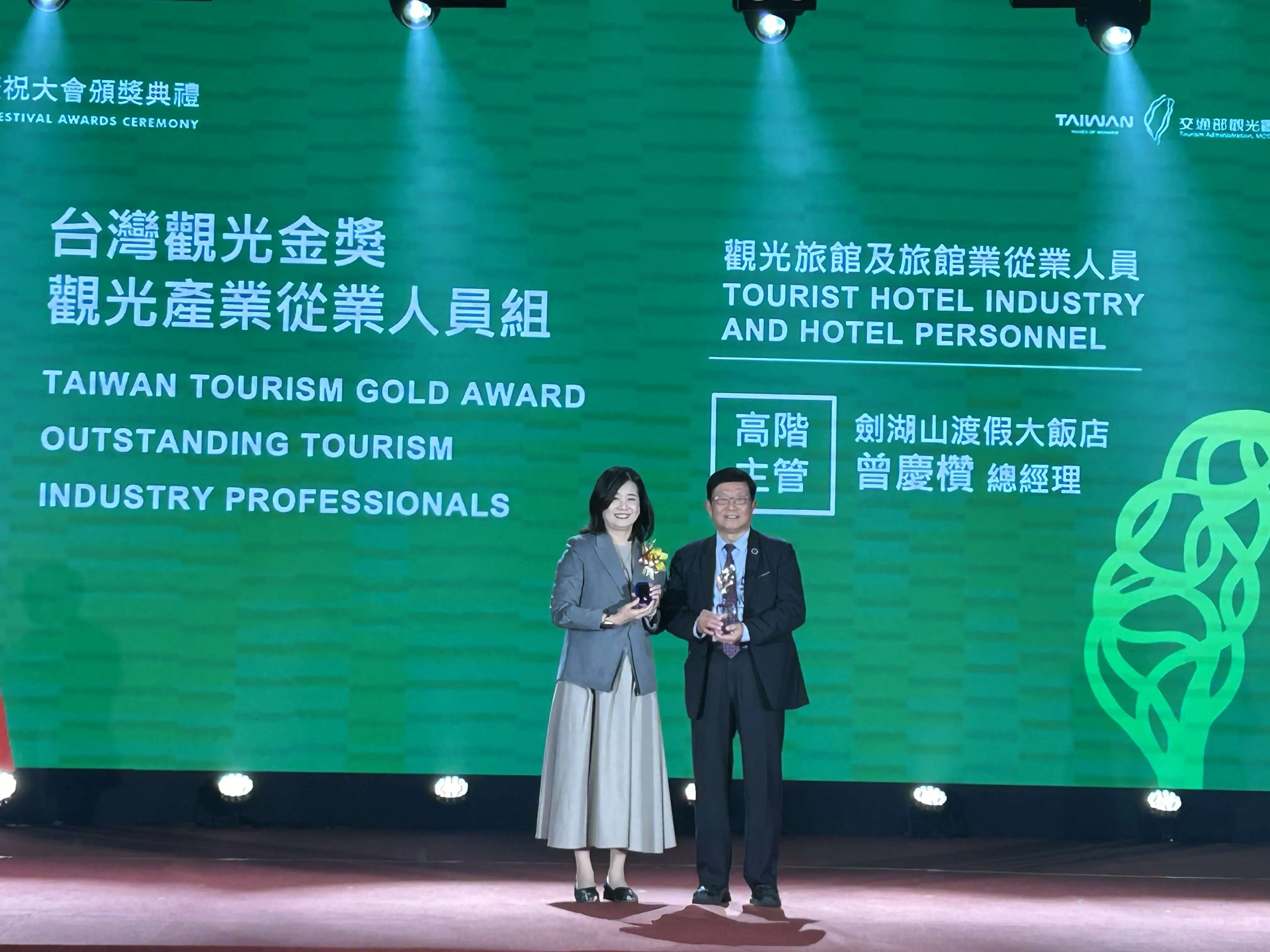 而劍湖山世界也憑藉卓越的運營品質與顧客滿意度,在觀光署最新年度督導考核中再次蟬聯最高榮譽「特優等」。同時。劍湖山渡假大飯店曾慶欑總經理憑藉深耕觀光產業多年的卓越貢獻,榮獲個人最高榮譽「台灣觀光金獎」。