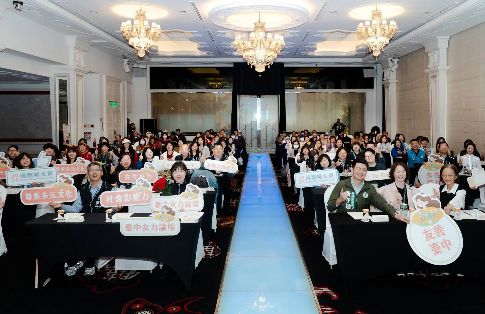 今日活動,市議員黃守達、劉士州、市政顧問曾瓊存、社會局副局長林資芮、西屯區長鄭錫禧、台中市性別平等委員許雅惠、陳斐虹、阮芳鴛出席;立法院副院長江啟臣、立法委員楊瓊櫻、廖偉翔、黃健豪、陳清龍、市議員黃馨慧、陳文政、李中、朱元宏、林霈涵、朱暖英,以及文化局、勞工局、人事處、運動局、觀光旅遊局、數位發展局、主計處、秘書處、原住民族事務委員會與11個區公所代表亦到場共襄盛舉。
