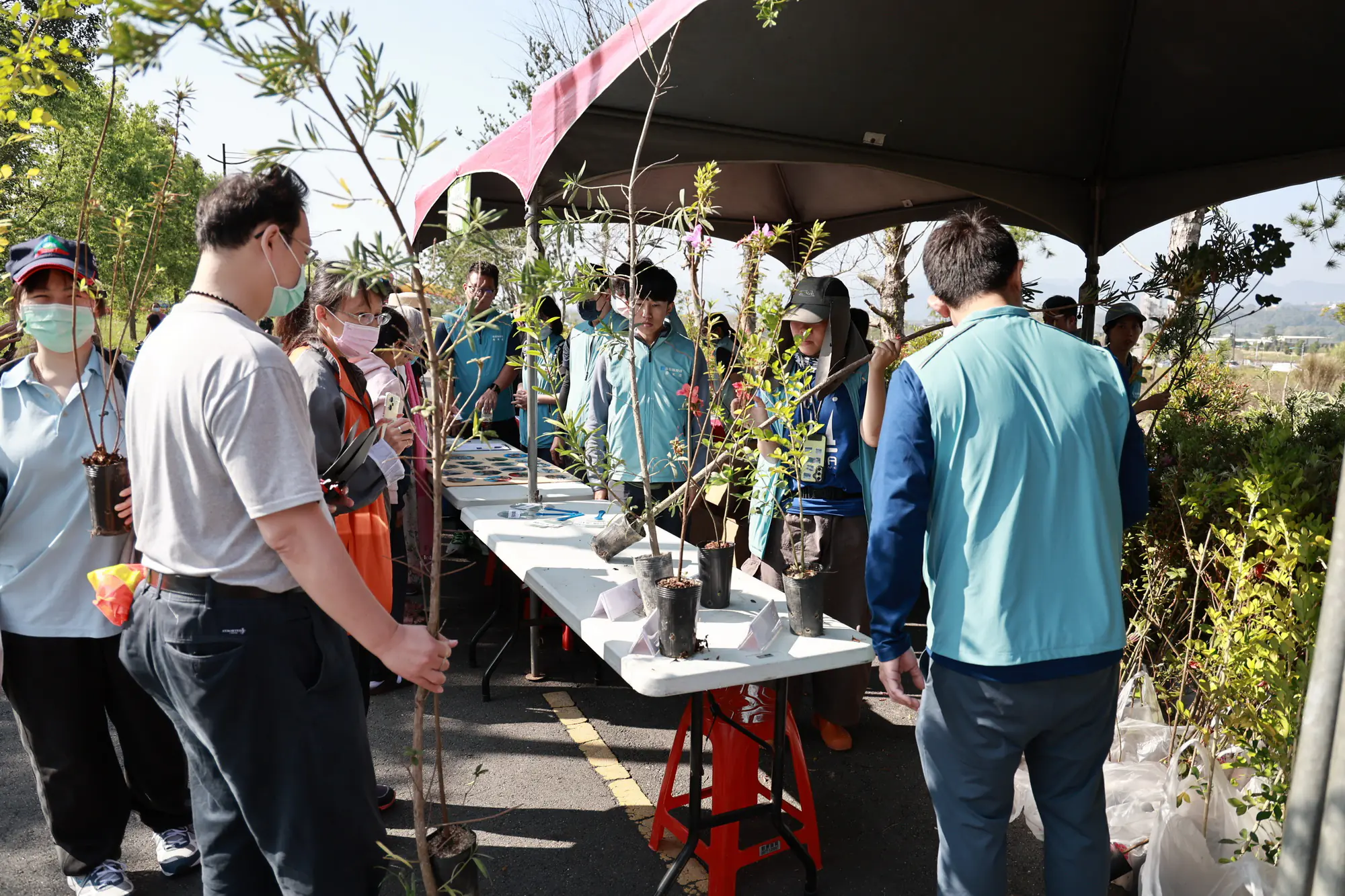 活動當日除結合在地青農特產產品展售、多處政令宣導攤位外,還有限量的手作多肉植物及闖關遊戲贈樹苗等活動,現場共提供香花植物七里香、庭園植物蘭嶼羅漢松、原生種杜鵑-金毛杜鵑及烏來杜鵑等,共4種1,200株,讓民眾闖關帶回栽植,綠化生活環境。