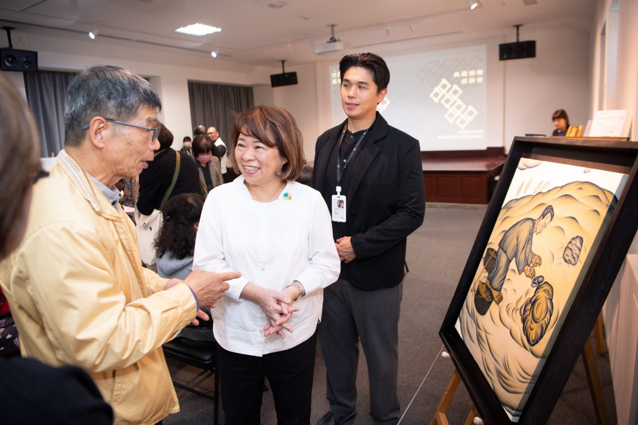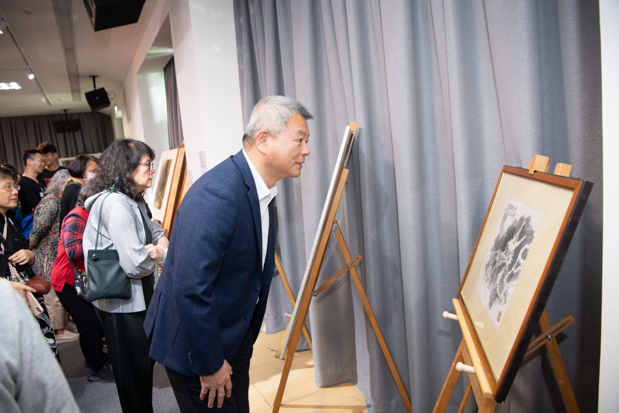 副市長欣賞畫作。
