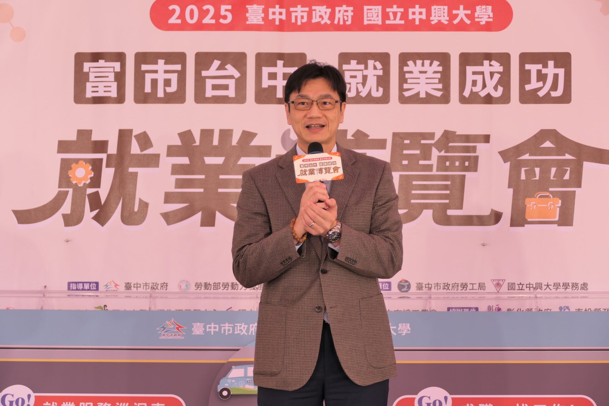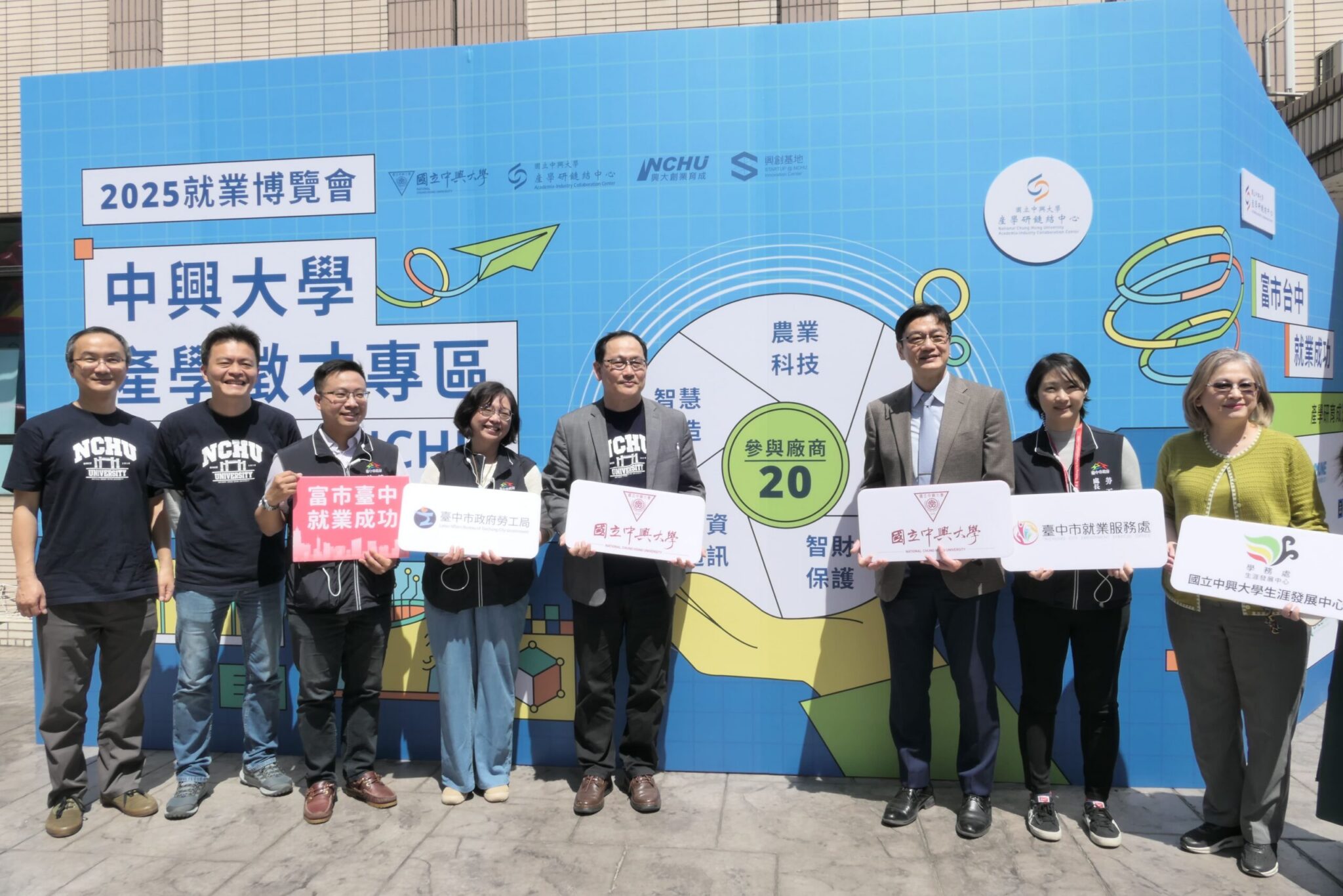 中興大學副校長張照勤提到,很榮幸與台中市政府持續22年合作舉辦就業博覽會,感謝優質的市政團隊,創造多元就業機會及就業環境,讓勞工朋友安心就業、共同耕耘及發展。今日活動囊括各產業重要領域,中興大學亦特別設置產業徵才專區,為青年學子及求職者創造更多工作機會,祝福求職者於今日活動找到理想的工作,與企業創造雙贏。