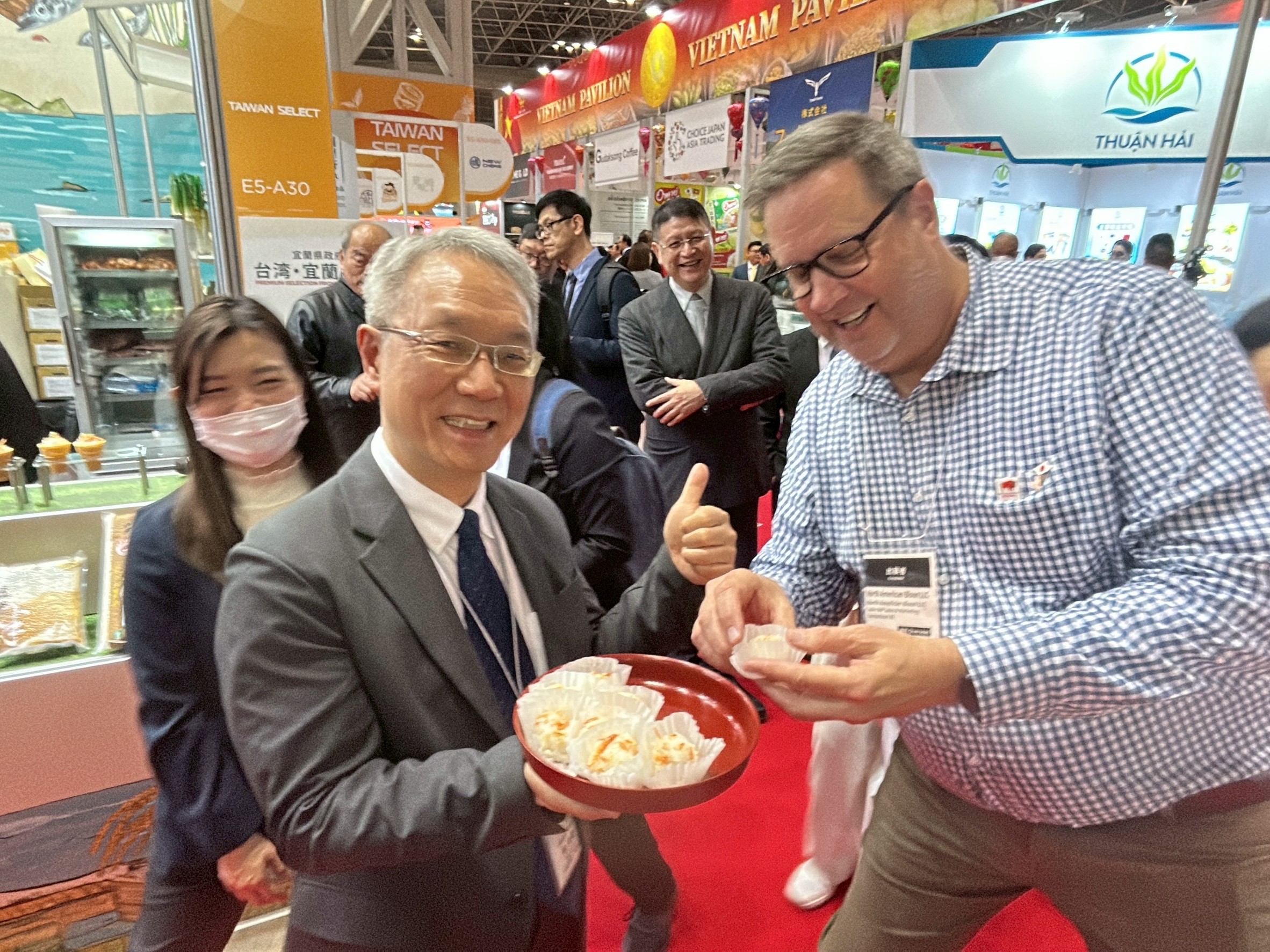 開展首日,「宜蘭嚴選館」吸引大量國際採購業者與日本民眾,現場品嚐豆豆米脆脆、金棗核桃糕、素馨紅茶及嬌澳蝦餅後紛紛讚不絕口,對宜蘭美食留下深刻印象。林茂盛更化身食農教育講師,現場展示「一期一作、農藥零檢出」的宜蘭嚴選米選品制度,搭配三星蔥與櫻花蝦製作甜筒米飯糰,佐金柑氣泡蜂蜜酒及素馨紅茶,讓參展業者與媒體大為驚豔。