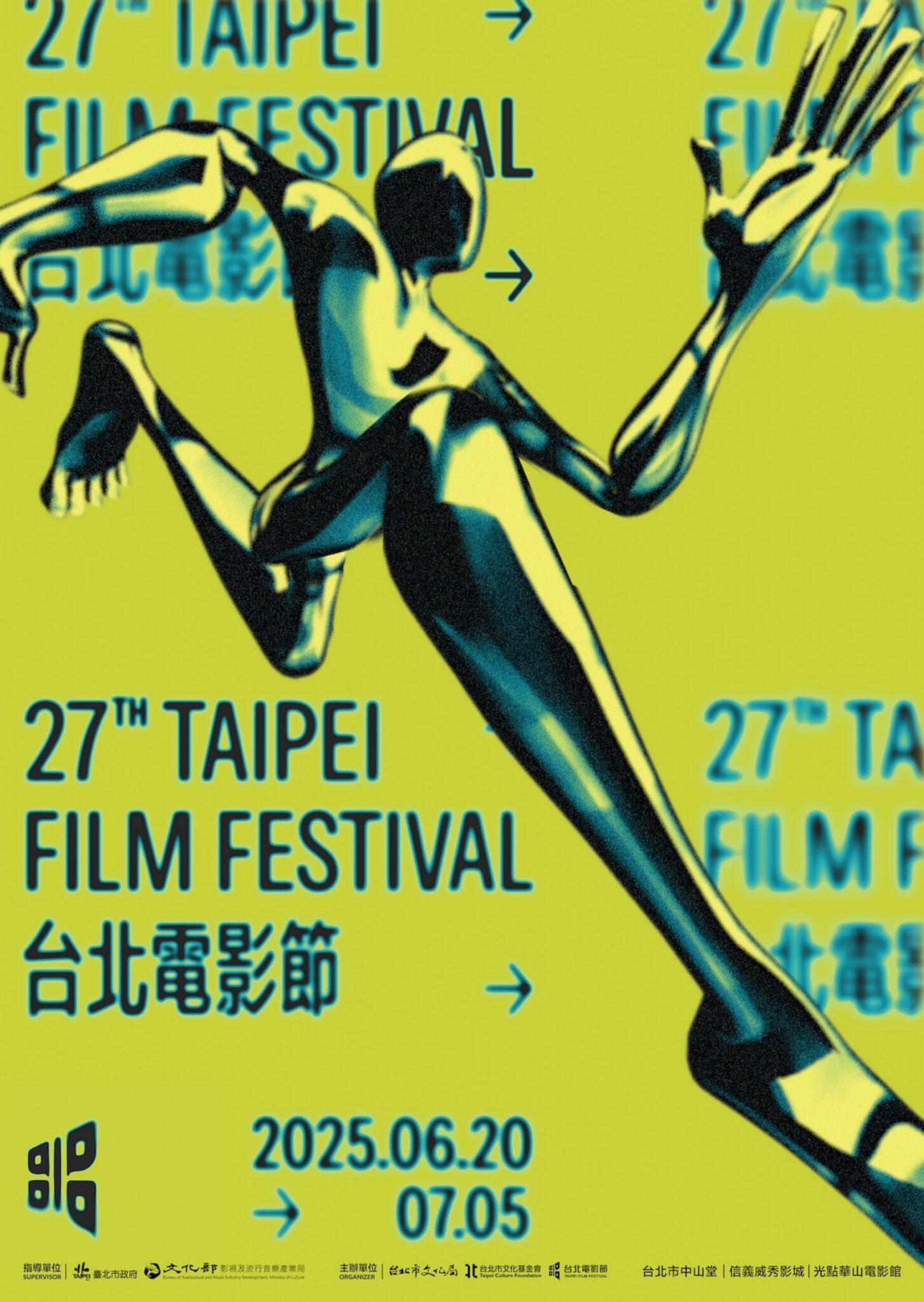 2025第27屆台北電影節21日發布主視覺,由曾入圍金曲獎最佳裝幀設計獎,擔任過金曲獎、金音獎創作獎主視覺設計的盧翊軒及其團隊「Local Remote」共同操刀,以今年影展的核心精神「挑戰!Dare to Try.」為設計理念,透過一名邁開步伐、持續向前奔跑的「奔跑人」,傳遞不斷突破極限的動能,象徵台北電影節及影視創作者在面對未知挑戰時,勇敢追求創新並突破框架的精神。