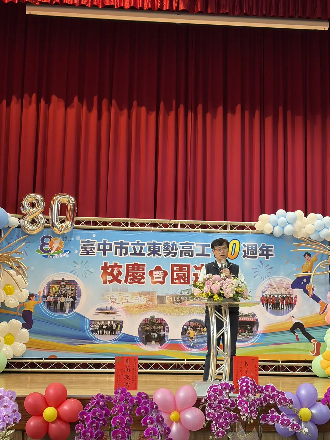 台中市立東勢工業高級中等學校今(14)日舉辦創校80週年校慶慶祝大會,市府副秘書長張大春及教育局長蔣偉民到場與師生、校友及地方人士共同見證東勢高工深耕山城、培育技職人才的重要里程碑。
