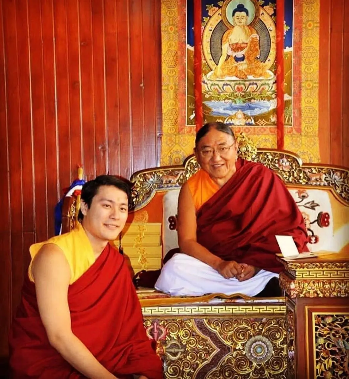 尊貴的41任法王與即將繼任為44任法王的無變金剛仁波切。法王的尊銜將由原本的度母宮交接至圓滿宮。