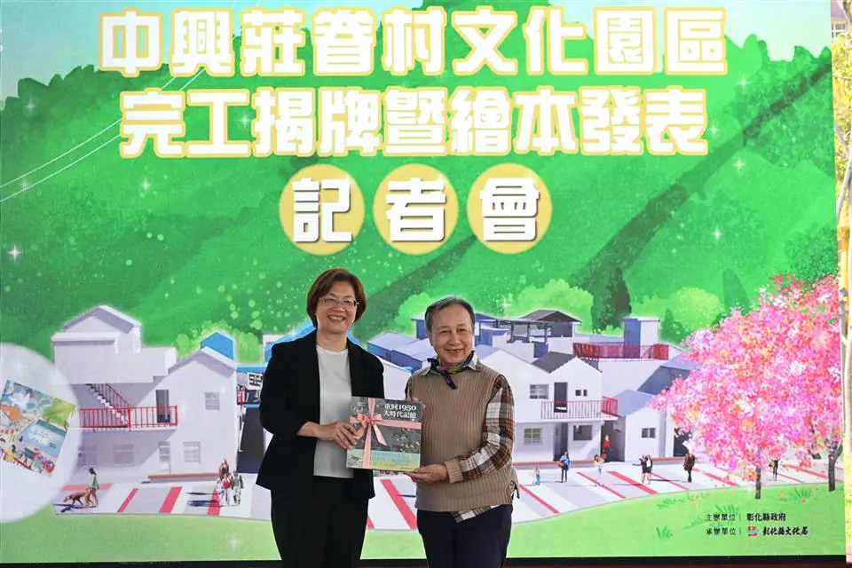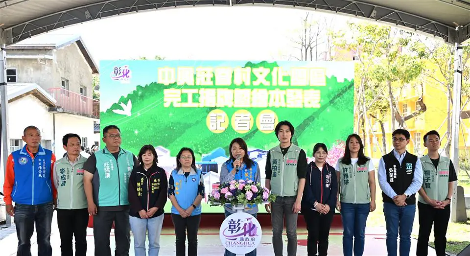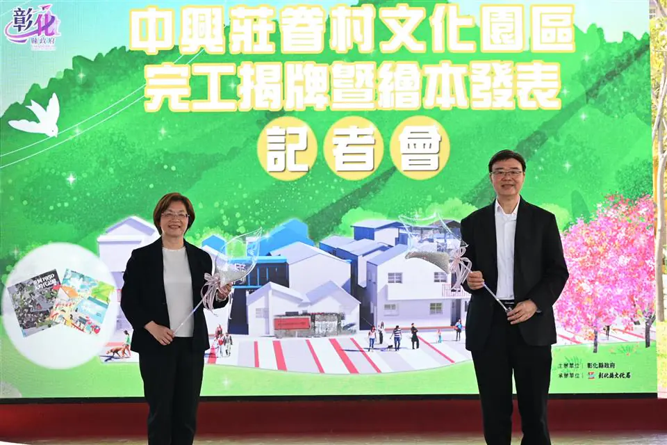 彰化縣政府致力於文化資產保存及活化,「中興莊眷村文化園區」歷經多年修復正式完工,今(18)日在縣長王惠美、文化部文化資產局副局長粘振裕及各級民代見證下,為園區入口意象揭牌。同時發表中興莊專屬原創繪本,分為《重回1950大時代記憶》、《希望之丘—中興莊》上下兩冊,期透過繪本讓眷村記憶以新的方式被看見,一代一代傳承下去。