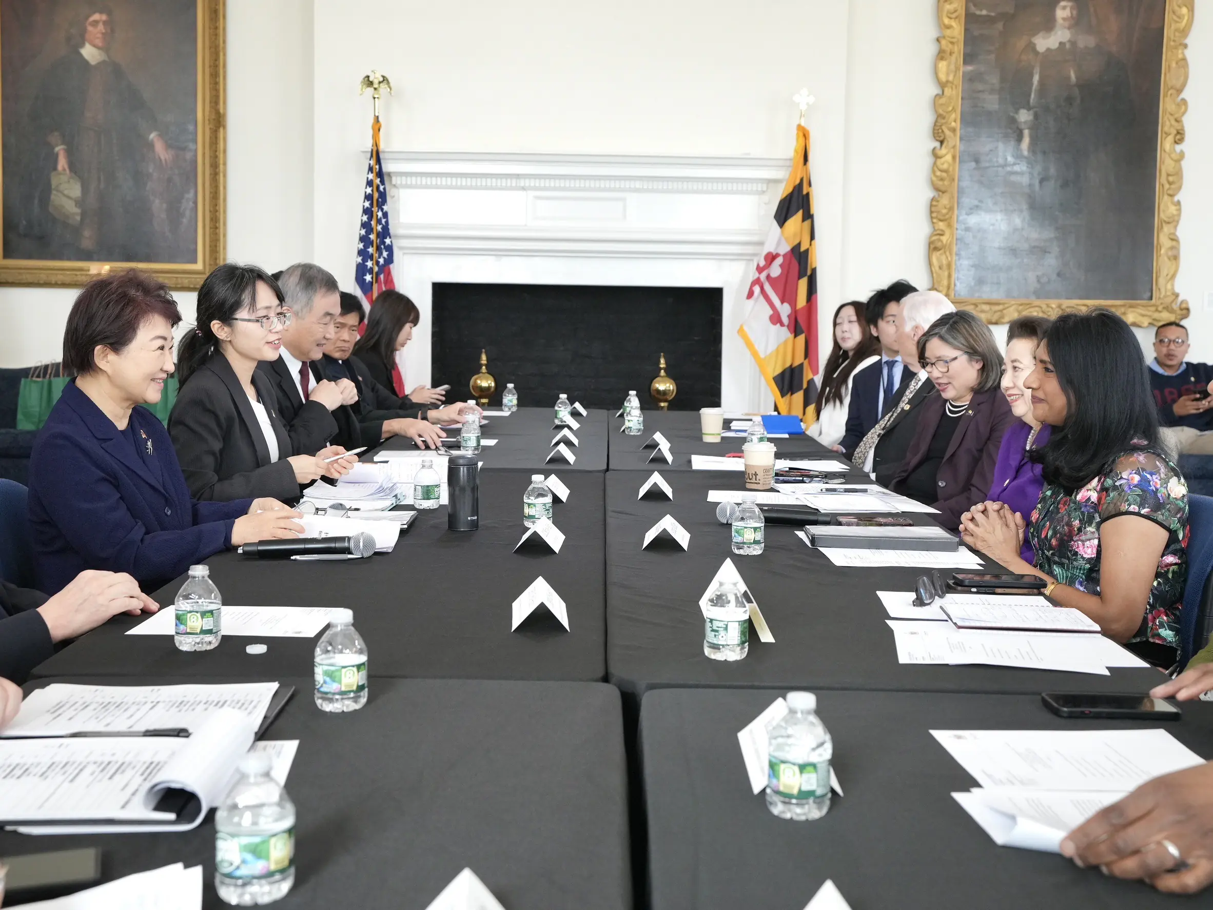 台中市長盧秀燕率團訪美,行程於美東時間3月17日抵達馬里蘭州,拜會該州副州長米勒(Aruna Miller)及州務卿李鳳遷(Susan C. Lee)等州府高層團隊。米勒副州長熱情接待訪團,參訪美國現存歷史最悠久,建於 1772 年的州首府大廈,並對盧市長作為民選女性市長表達高度敬意,肯定其肩負重任且竭盡所能服務市民的貢獻。