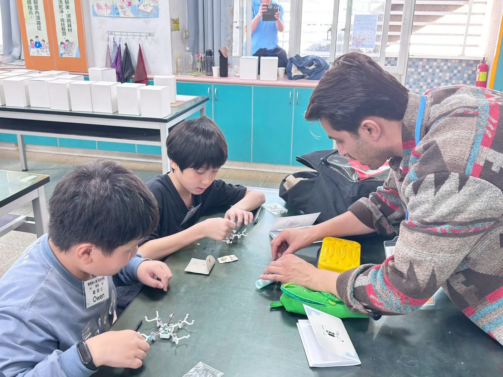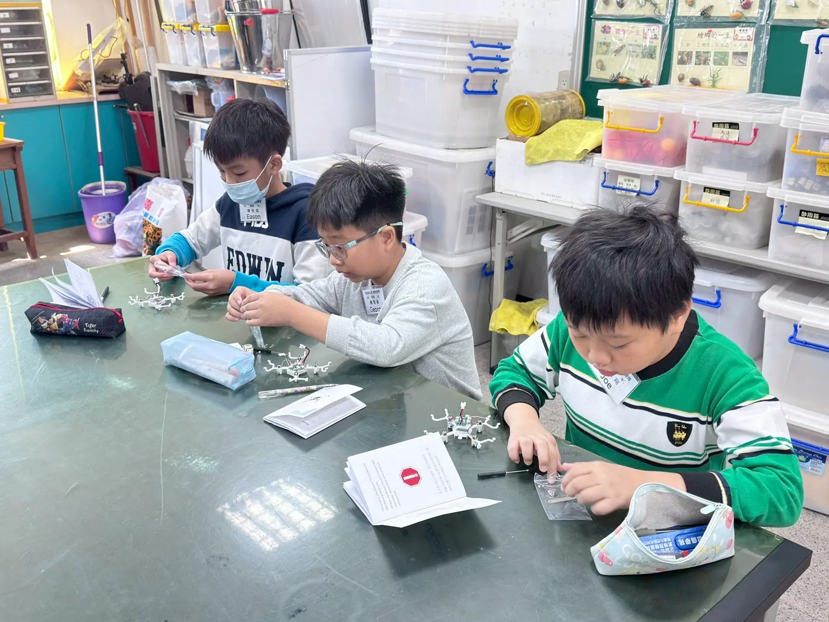 同時,志航國小自然教室辦理結合英語與科技之「雙語無人機營隊」,課程結合學校飛行特色,並由國立中正大學4位外籍助理(Ejaz、Anushka、Zain、Mumina)擔任教學人員,在英語教育資源中心外籍英語教學顧問Ben統籌規劃下,引導18名學生全程以英語進行無人機組裝與操作。學生在組裝馬達、連接飛行控制板與測試飛行過程中,以英語進行指令操作與互動討論,於實作情境中自然運用語言,展現科技與語言學習相互融合之成果。