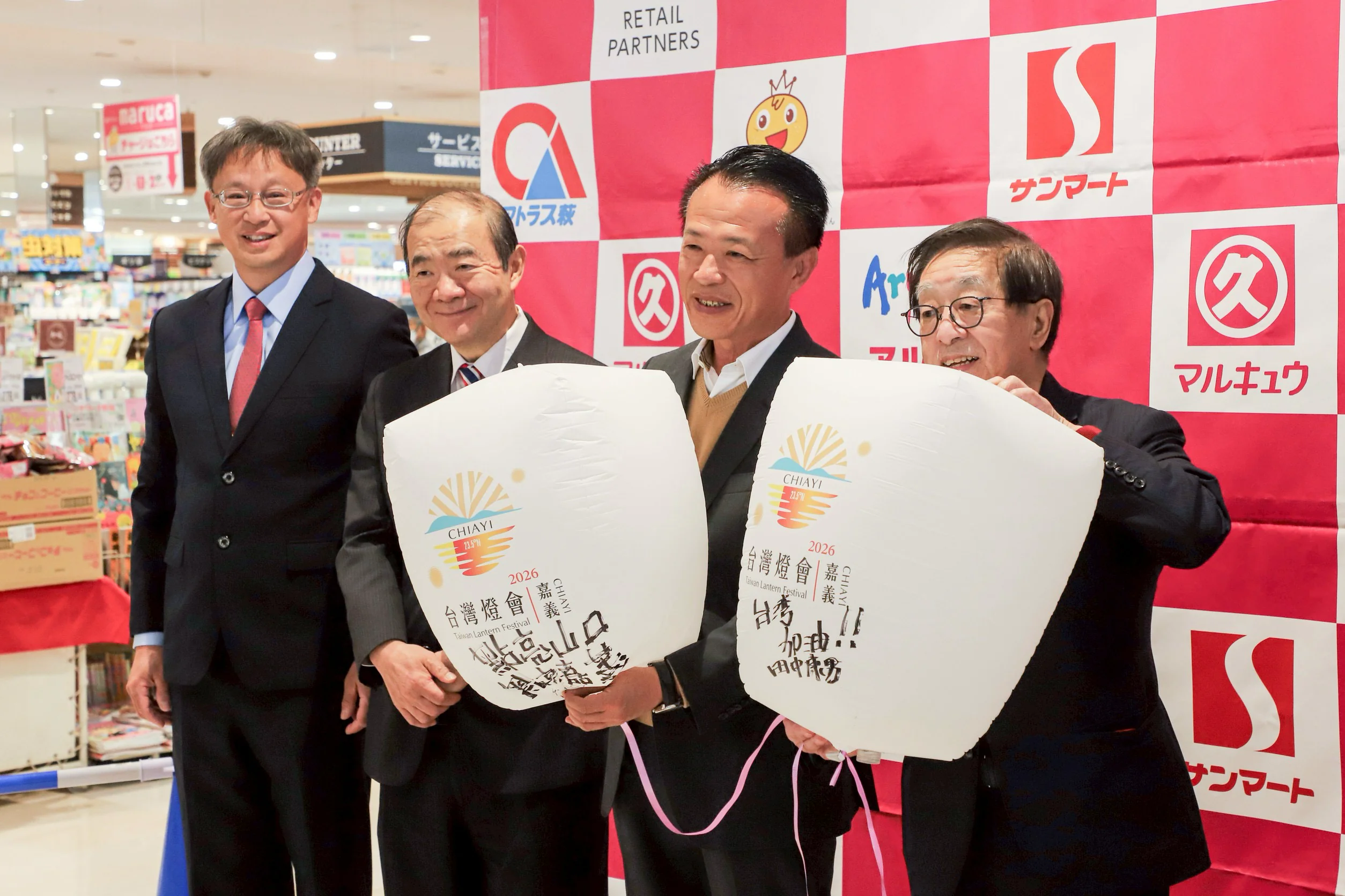 記者會中安排天燈祈願儀式,呼應剛落幕的「2026台灣燈會在嘉義」,透過具有台灣文化意象的天燈為開幕式增添交流意義,吸引許多民眾圍觀,翁章梁也熱情招呼試吃,大家品嚐後讚不絕口。