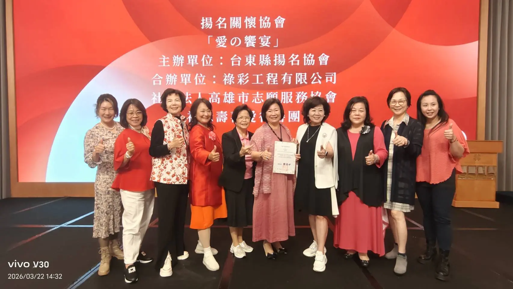 為傳遞社會溫暖、凝聚公益力量,台東縣揚名關懷協會於3月22日中午在高雄漢來大飯店九樓金龍廳舉辦「人間有愛,溫情常在」愛之饗宴,現場席開盛會,吸引超過200位來自高雄、台東及各界公益夥伴齊聚一堂。