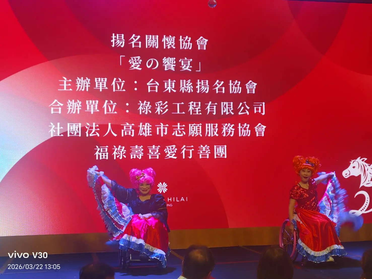 本次「愛之饗宴」由台東縣揚名關懷協會主辦,並獲多個民間團體、公益組織與企業共同支持,包括臺東縣脊髓損傷者協會、臺東星願自閉症兒童團體、高雄市多重障礙弱勢團體、社團法人高雄市志願服務協會、福祿壽喜愛行善團,以及祿彩工程有限公司等單位共同參與,展現跨領域攜手投入公益的行動力。