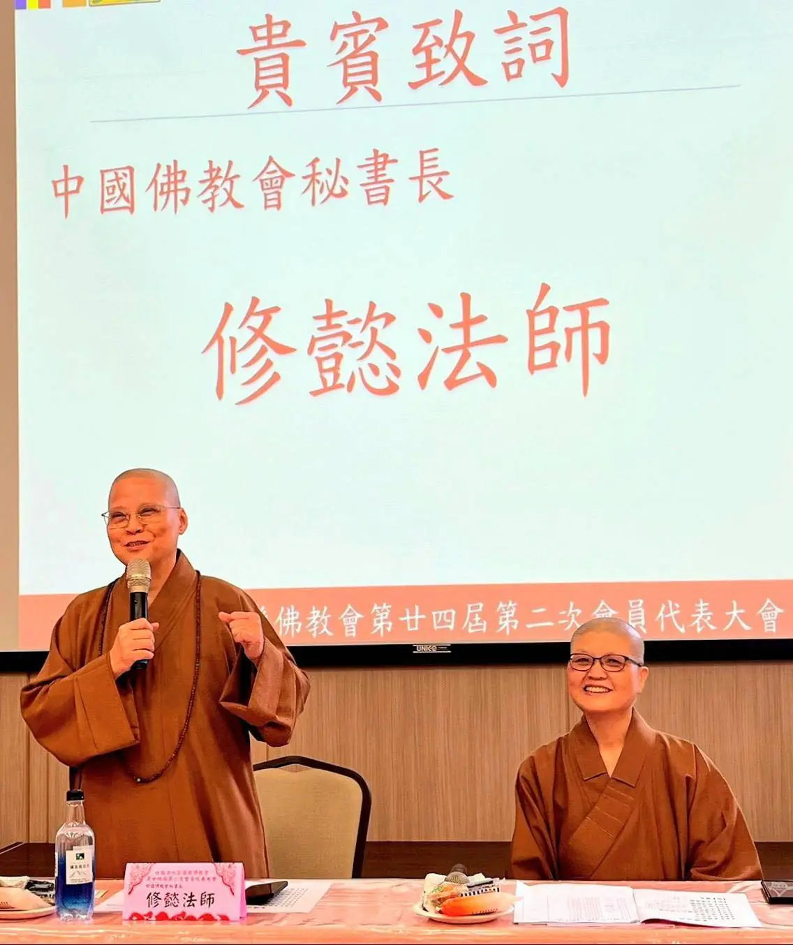 該會心茂理事長特指派修懿秘書長代表出席,應邀致詞特別感謝宜蘭縣佛教會,在妙志理事長帶領下,對本會各項會務及仁王護國法會之鼎力護持與襄助,盛讚該會暨所屬寺院團體於花蓮堰塞湖災害慷慨解囊,充分展現佛教慈悲濟世之精神。