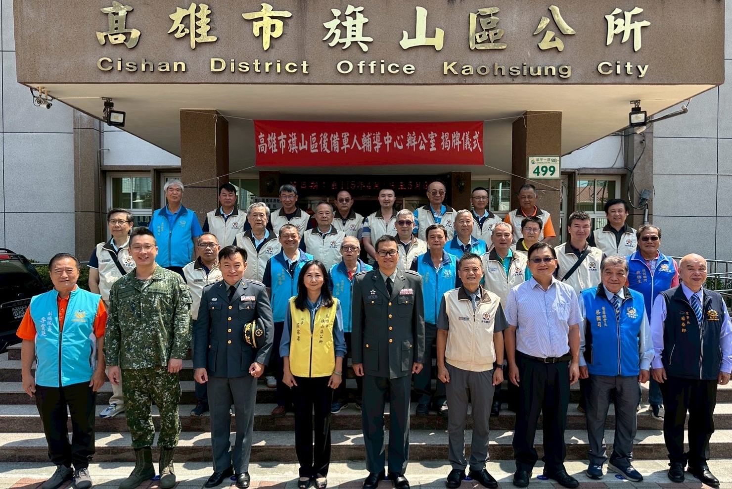高雄市旗山區日前於區公所2樓舉行「旗山區後備軍人輔導中心辦公室揭牌典禮」,由高雄市後備指揮部與旗山區後備軍人輔導中心共同辦理。軍政及地方各界人士到場見證,包括高雄市後指部留守業務科長李進明中校、八軍團副主任趙允中上校、保防組長林景德上校,以及後備憲兵、義消與警方代表等共同見證後備服務體系邁入新里程。