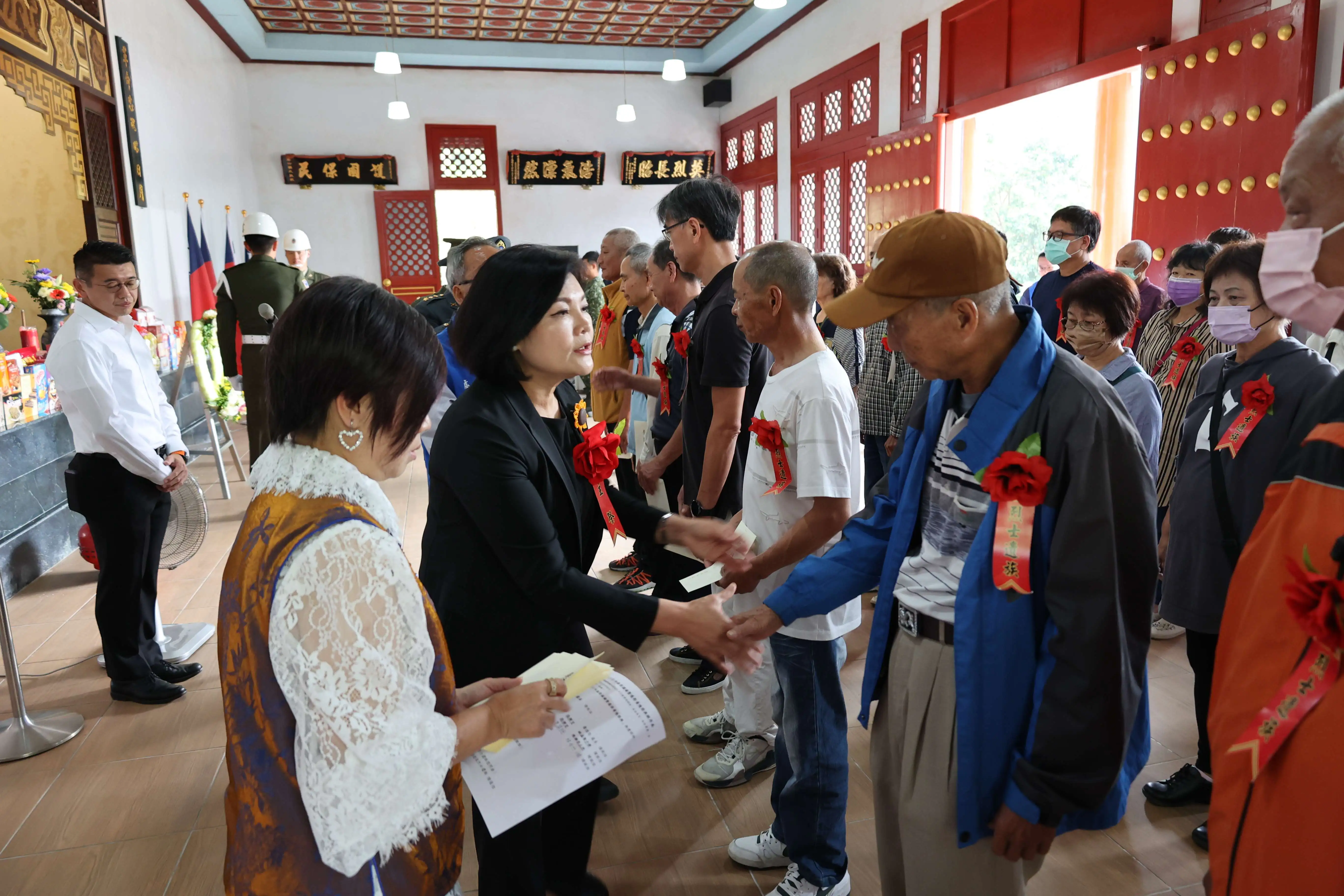 會後張麗善縣長逐一向遺族代表致意 並發放烈士遺族慰問金