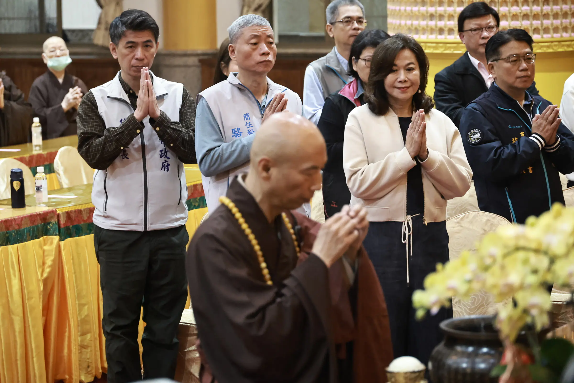 基隆市靈泉禪寺今(27)日舉辦開山祖師善慧老和尚145歲冥誕祭祖大典,現場莊嚴肅穆,各地信眾與基隆多所寺廟法師共同誦經祈福。基隆市副市長邱佩琳亦受邀出席,與信眾一同參與祭祖儀式。