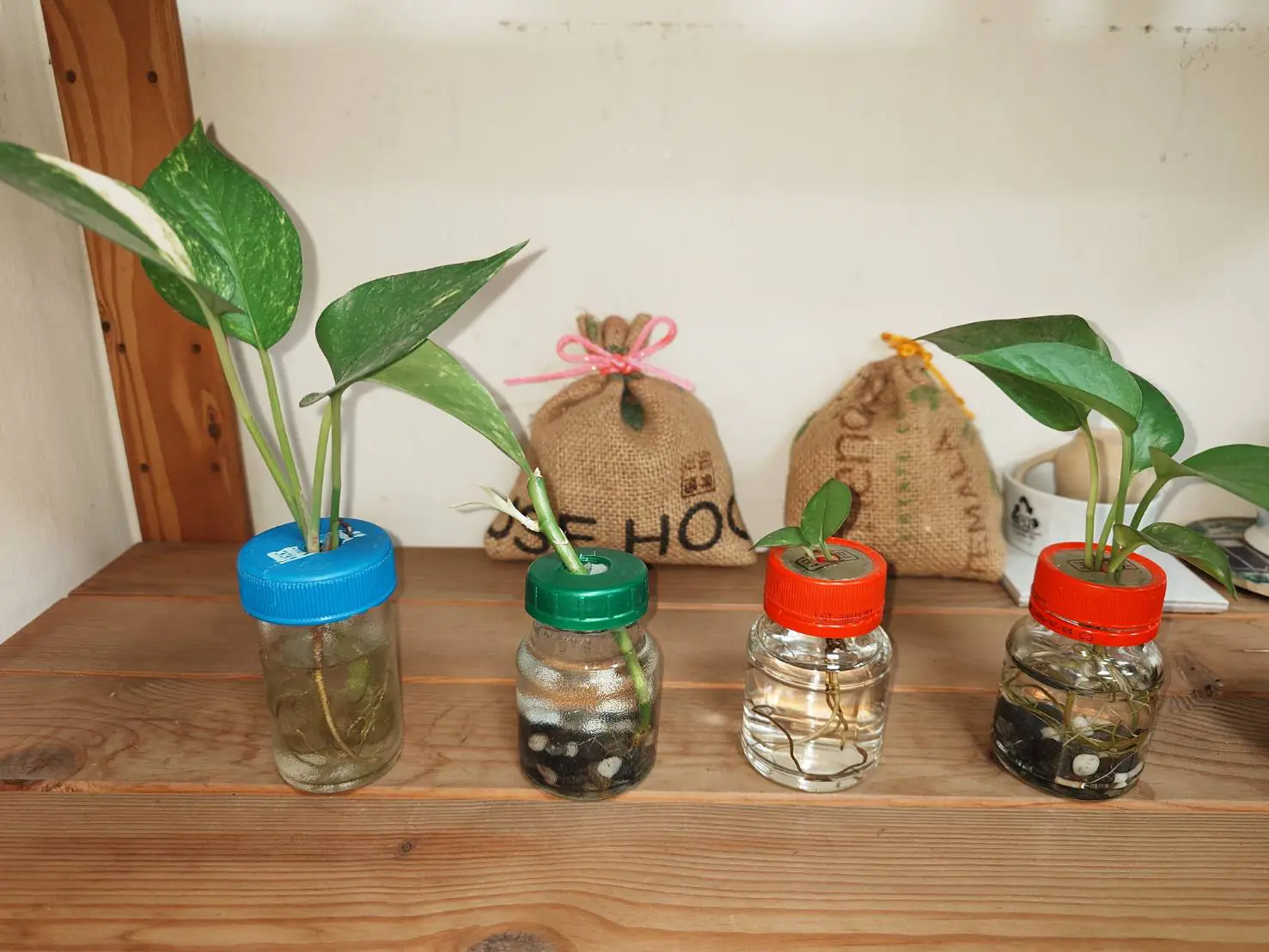 隨著民眾對綠色生活及居家園藝的興趣日益提升,水耕植物因栽培方式簡單、乾淨且易於照顧,受到許多民眾喜愛。中西區清潔隊也發揮創意巧思,利用回收的玻璃瓶與瓶蓋製作水耕植栽容器,將瓶蓋鑽孔後作為植物固定支撐,再搭配水耕植物栽種於玻璃瓶中。此設計不僅能有效阻隔病媒蚊進入水中產卵,降低病媒蚊孳生的機會,同時也能為室內空間增添清新自然的綠意景觀,兼具環保、美觀與防疫功能。民眾在享受栽種植物樂趣的同時,也能落實病媒蚊防治觀念,打造健康又舒適的居家環境。