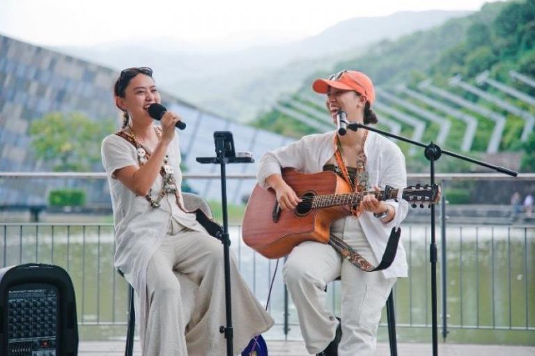 ▲排灣女聲將演唱多首部落組曲。(圖/記者蔣彤雲攝)