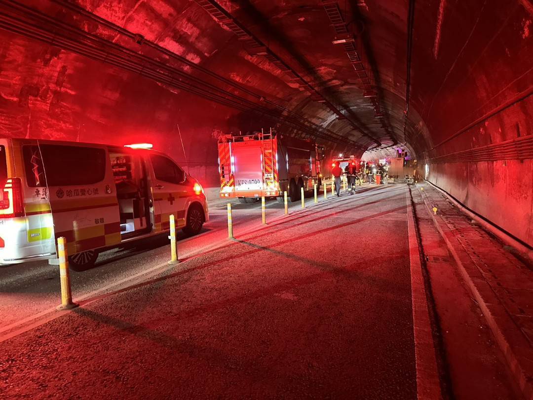 公路單位緊急啟動應變機制,採取「南下隧道單線雙向輪放」管制,讓警消進行灌救。