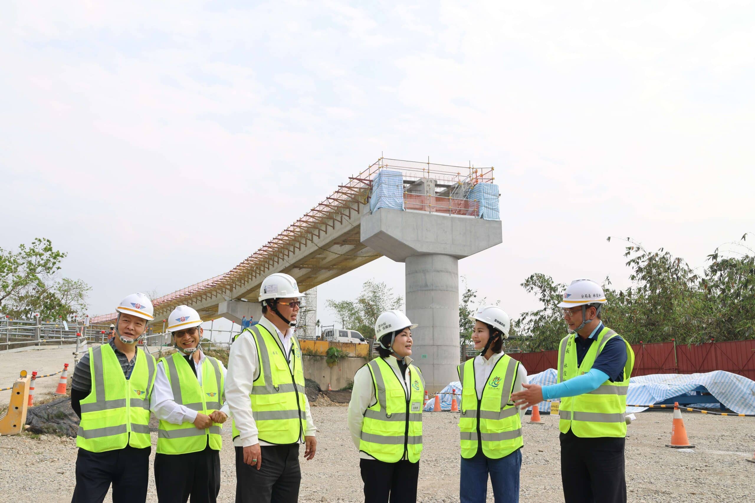 張縣長指出,縣府為順利發包施作,亦挹注2千多萬經費,工程於113年6月發包完成,由長達營造有限公司得標,113年8月3日開工,總工期1,050日曆天,期間縣交工局全力配合完成用地徵收取得,展現中央及地方相互配合,整體工程順利推展。