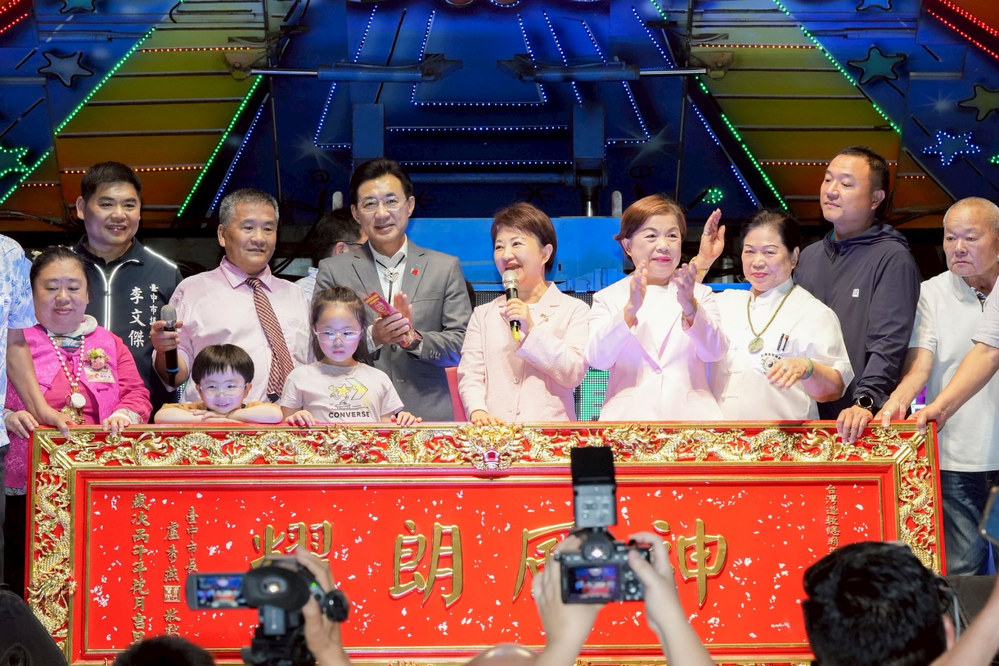 今日活動,盧市長、立法院副院長江啟臣、立法委員楊瓊瓔、何欣純、市議員李文傑、楊啓邦、施志昌、民政局長吳世瑋、外埔區代理區長鄭進來、無極三清總道院主委鄭銘輝、大甲鎮瀾宮董事長顏清標、台中南天宮主委吳光雄、樂成宮榮譽董事長郭松益、豐原樂天宮主委蔡慶川、沙鹿義聖宮主委吳卯水、台灣媽祖聯誼會長鄭銘坤、台灣省道教會理事長陳燦宏、中華無極瑤池西王金母教會理事長陳雪嬌等人均出席共襄盛舉。