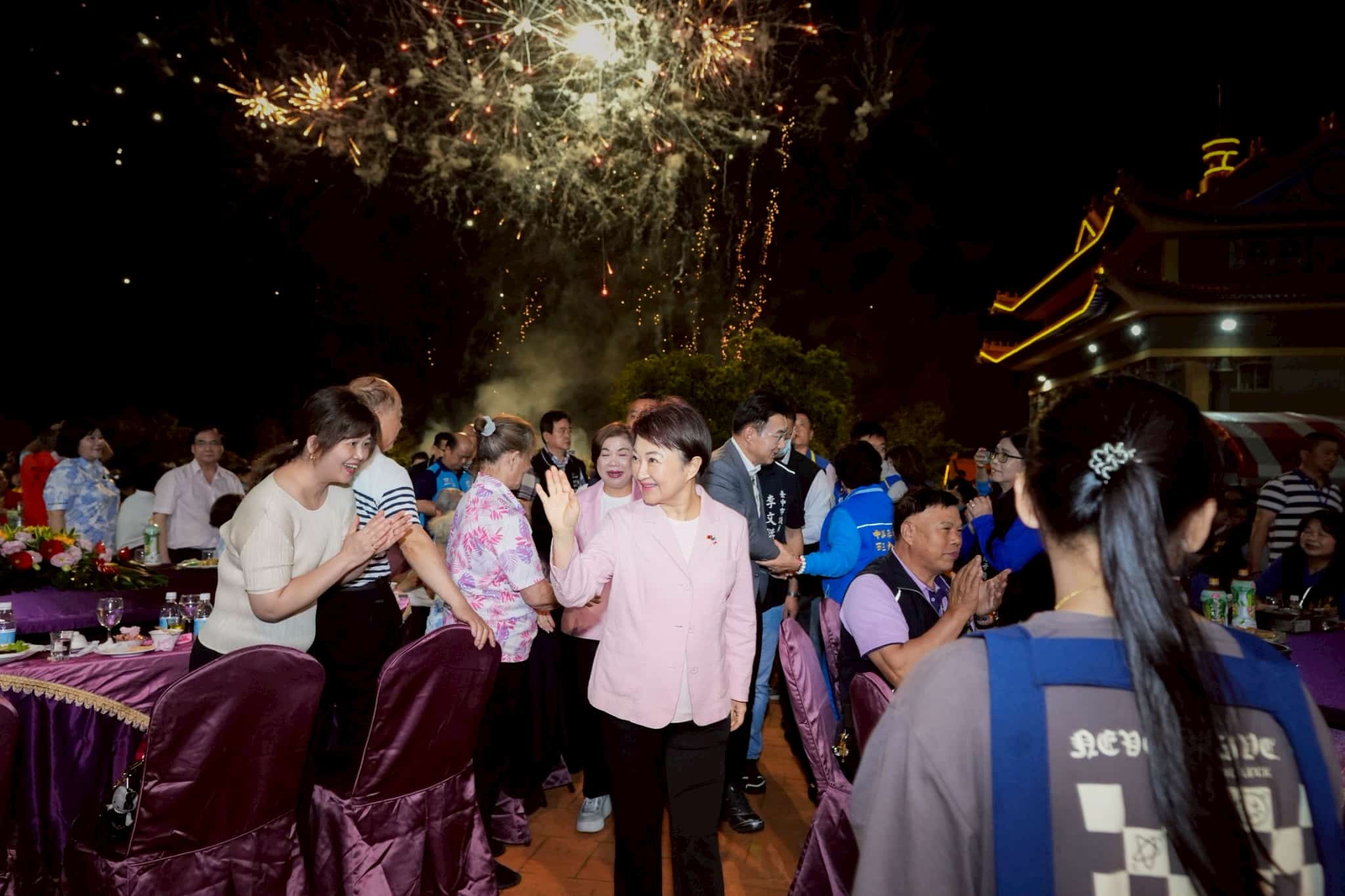 台中市外埔區台灣道教總廟無極三清總道院,為恭祝三清道祖與觀音大士聖誕,自3月29日起連續5天舉辦「祈安禮斗植福息災拔度法會」,並於今(2)日晚間舉行平安福宴,邀集各友宮代表、道長及信眾共襄盛舉,席開150桌,場面熱鬧。台中市長盧秀燕親自到場致意,代表市府致贈「神風朗耀」匾額,肯定其長年弘道濟世、造福地方。