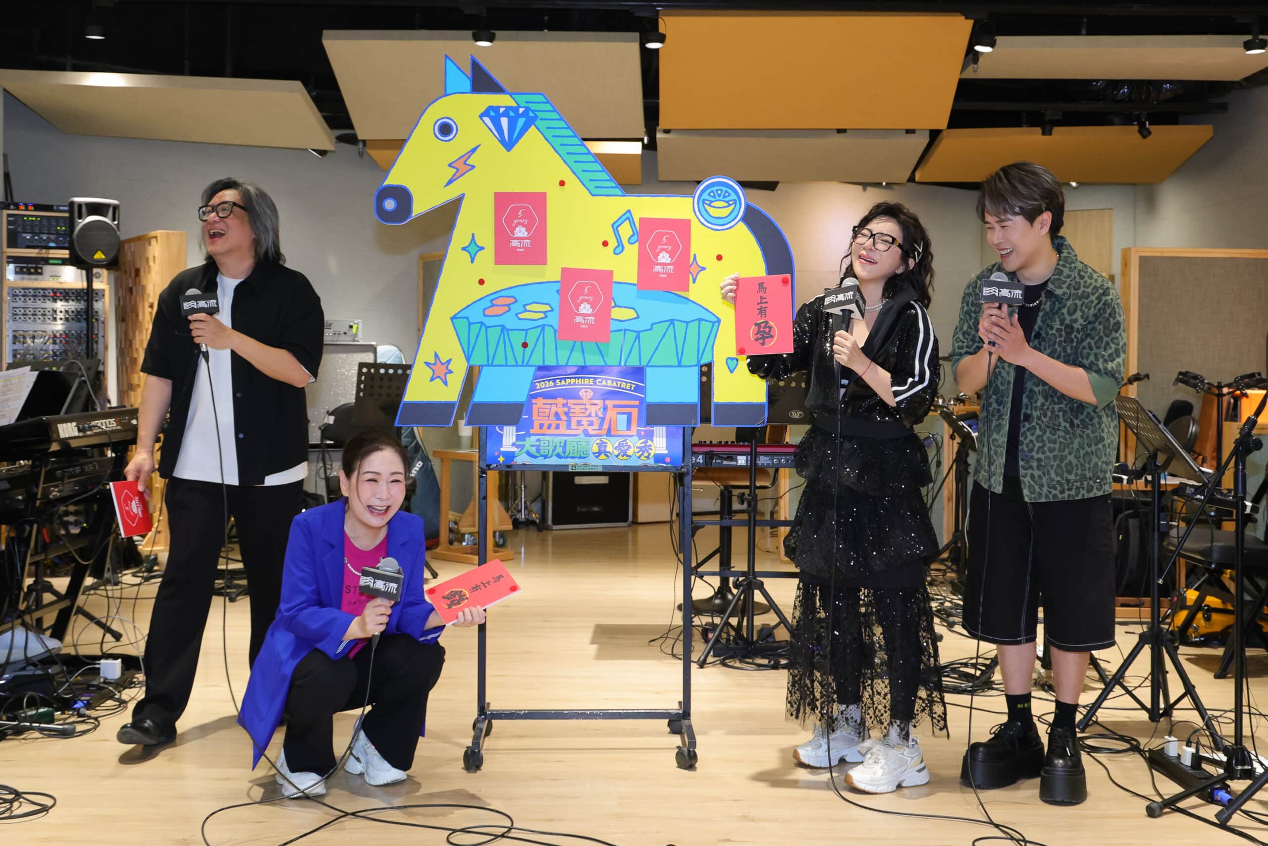 高流執行長丁度嵐亦現身探班打氣,手抱一桶超吸睛的巨型爆米花和現場所有藝人、歌手與媒體朋友分享,分享寓意並充滿信心表示:「今年『藍寶石』不只金曲連發,節目內容更會就像爆米花一樣源源不絕蹦出『滿滿笑料、創意驚喜』。」現場氣氛也在趣味互動中推向高點,四位藝人一同進行「馬年開運預測」,透過抽紅包分享吉祥話寓意,從「馬上有孕」象徵添丁之喜、家庭圓滿;「馬上有錢」寓意財運亨通、收入滿滿;「馬上有場」代表演出邀約不斷、舞台機會接連而來;「馬上有力」象徵身體健康、精力充沛;「馬上有吉」則傳達萬事順遂、好運降臨;再到「馬上有聲」寓意名聲大開、作品廣為傳唱,句句吉祥話也為即將到來的演出增添滿滿好彩頭。