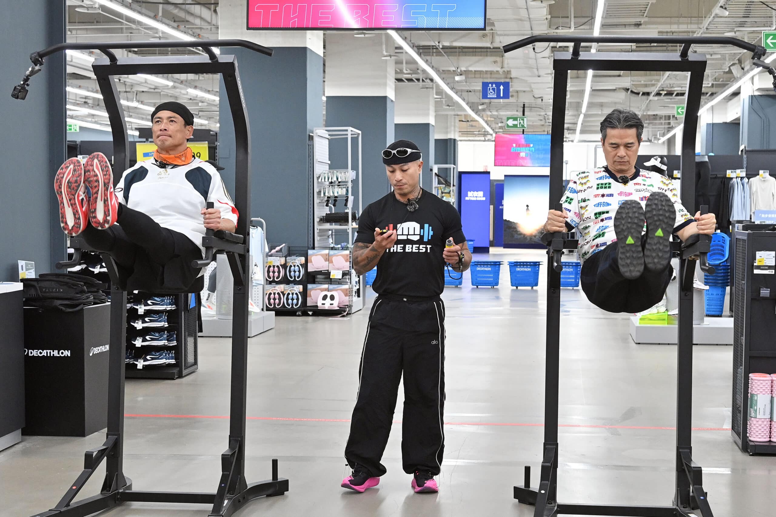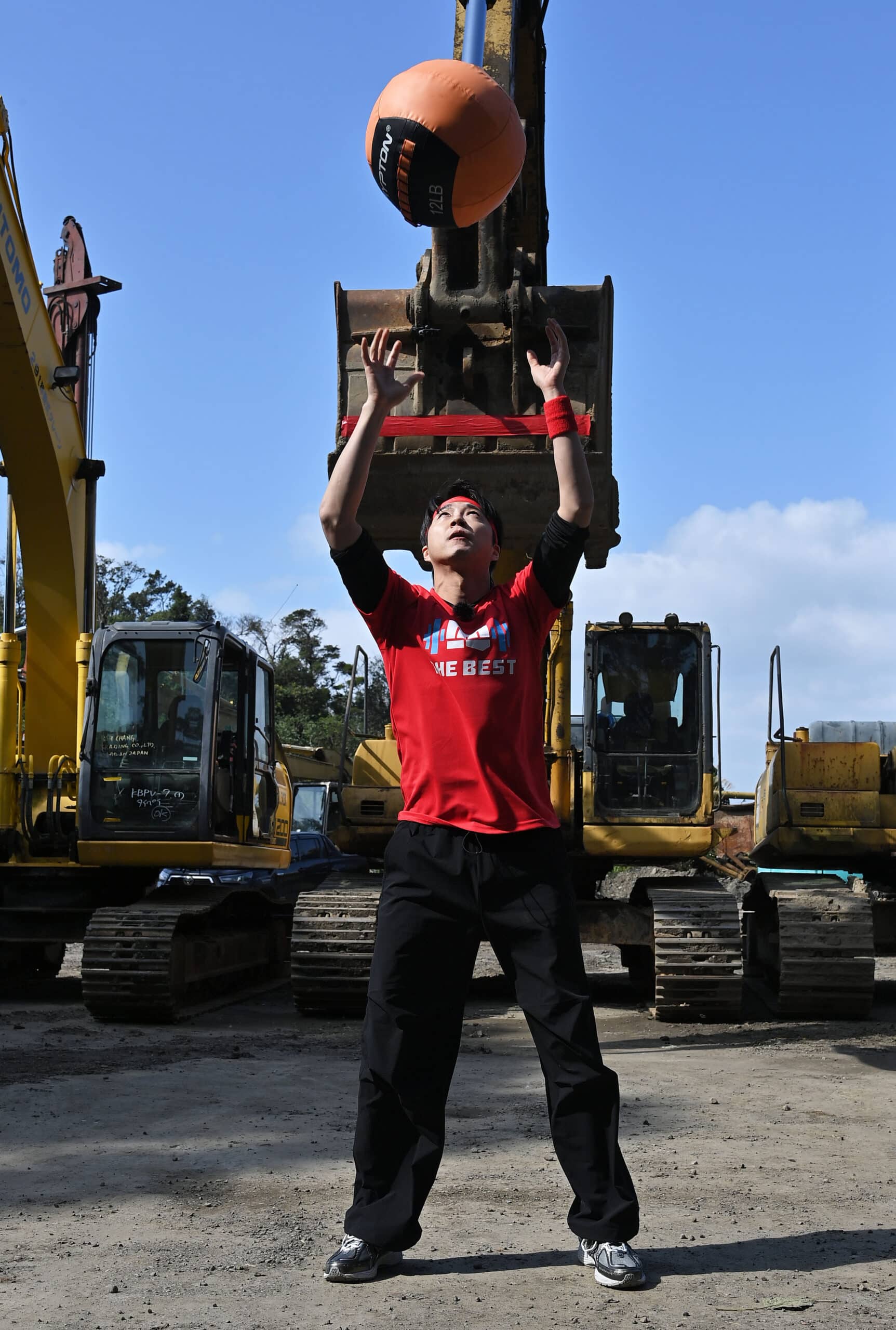 八點檔男神江宏恩在比賽一開始,就手拿120磅(54公斤)一共4個沙袋,相當游刃有餘的快速前進,看到江宏恩優異的表現,讓場邊主播蔡尚樺忍不住讚嘆:「他怎麼可以數十年如一日都那麼厲害啊!」敵對紅隊的李興文也展現過人實力,沙袋上肩跑步前進,徐展元直言「報告班長!輸人不輸陣」。