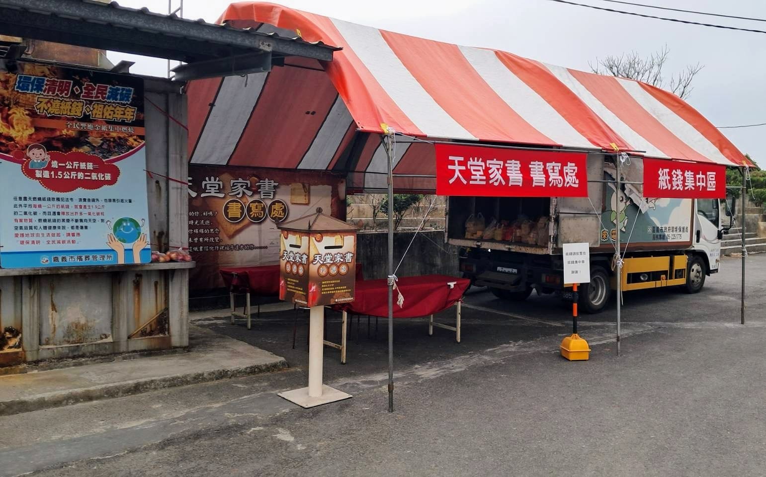 嘉義市殯葬管理所為維護服務品質,全體總動員參與服務、清潔、宣導及諮詢工作,314日至4月6援例市立納骨堂前設置「諮詢服務處」,提供民眾茶水、先人塔位位置查詢及其他殯葬服務諮詢。4月44月5日停止火化作業,殯儀館遺體入館服務照常24小時作業;並於市立納骨堂旁提供環保局與公益團體共同辦理「以代金」活動,兼顧慈善公益與環保永續