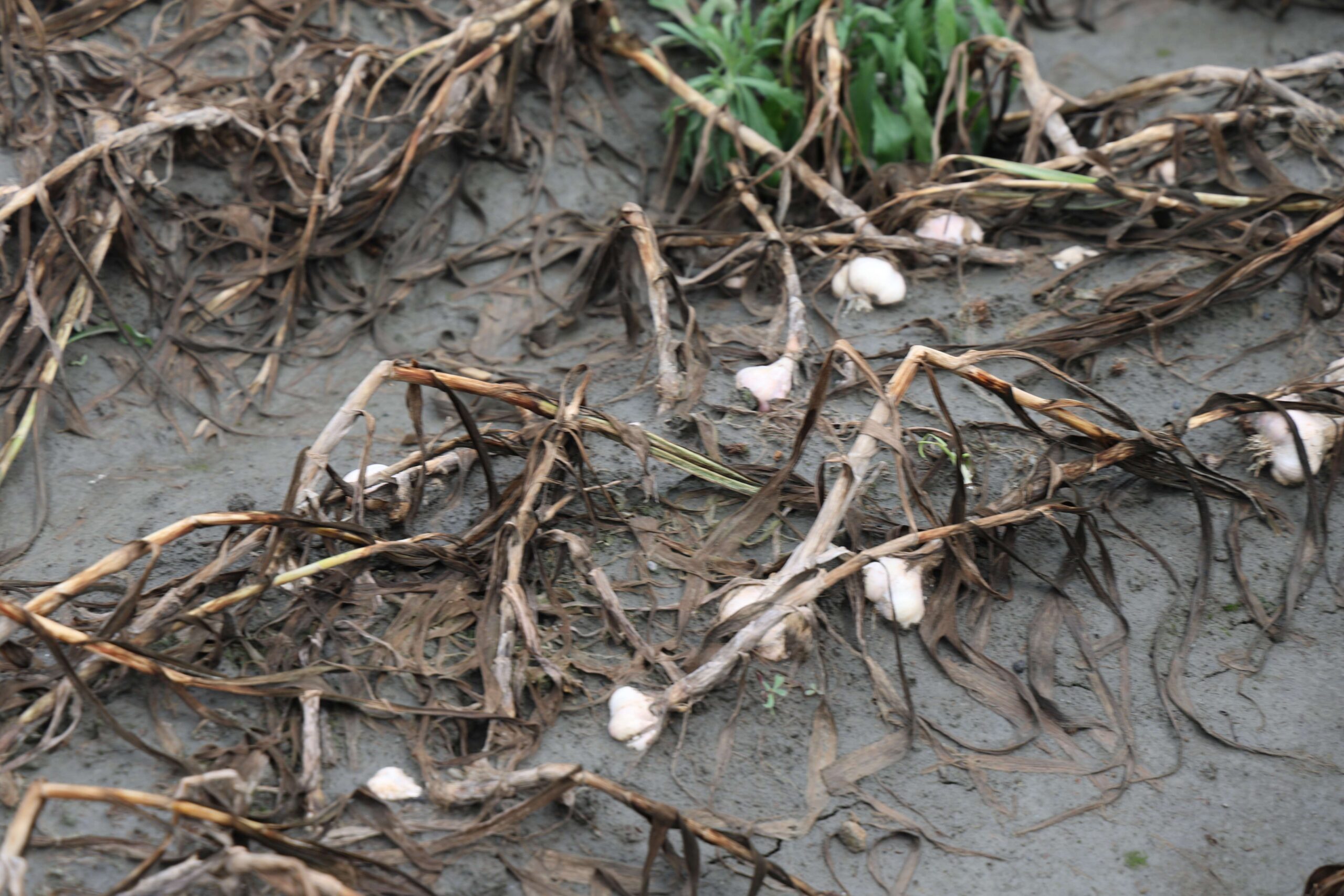 受4月清明連日豪雨影響,雲林縣大蒜產區多處蒜田泡水,出現蒜膜腐爛、蒜頭開瓣等情形,影響農民收益。雲林縣政府今(7)日上午邀集四湖鄉公所、農糧署中區分署及台南區農業改良場辦理現地勘災,立委張嘉郡、丁學忠也到場關心,副縣長謝淑亞呼籲中央儘速啟動天然災害救助,減輕農民損失。