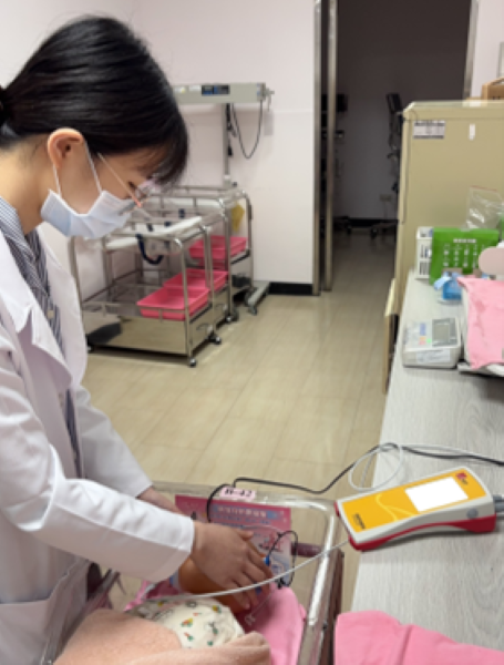 北榮新竹分院持續推動「健康台灣深耕計畫」,深化偏鄉婦幼醫療服務,引進新生兒聽力篩檢醫療儀器多功能誘發聽力檢查儀(PATH Sentiero Advanced),透過整合產科照護與新生兒健康篩檢機制,強化早期發現與後續評估銜接,讓偏鄉新生兒於出生後即啟動相關篩檢與照護流程,銜接完成評估,減少轉診需求,進一步提升醫療可近性與照護品質。