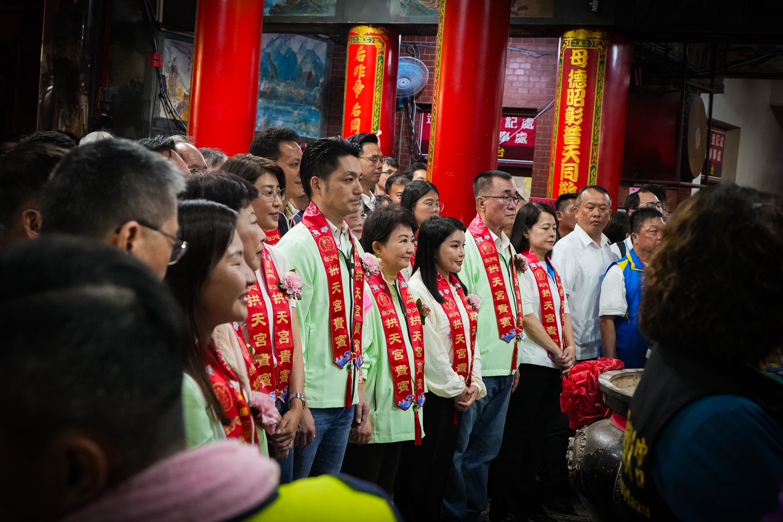 昨晚登轎儀式,包含台中市長盧秀燕、台北市長蔣萬安、苗栗縣長鍾東錦、彰化縣長王惠美、雲林縣長張麗善、南投縣長許淑華、花蓮縣長徐榛蔚、立法委員黃健豪、楊瓊瓔、邱鎮軍、傅崐萁、許宇甄、陳清龍、張嘉郡、陳超明、陳亭妃、莊瑞雄、台中市議員江和樹、台中市副市長鄭照新、民政局長吳世瑋、新聞局長欒治誼、數位發展局長林谷隆、研考會主委林鼎超、警察局長吳敬田、拱天宮主任委員洪文華、北港朝天宮董事長蔡咏鍀、通霄鎮長張可欣、苗栗市長余文忠、北港鎮長蕭美文等人均出席共襄盛舉。