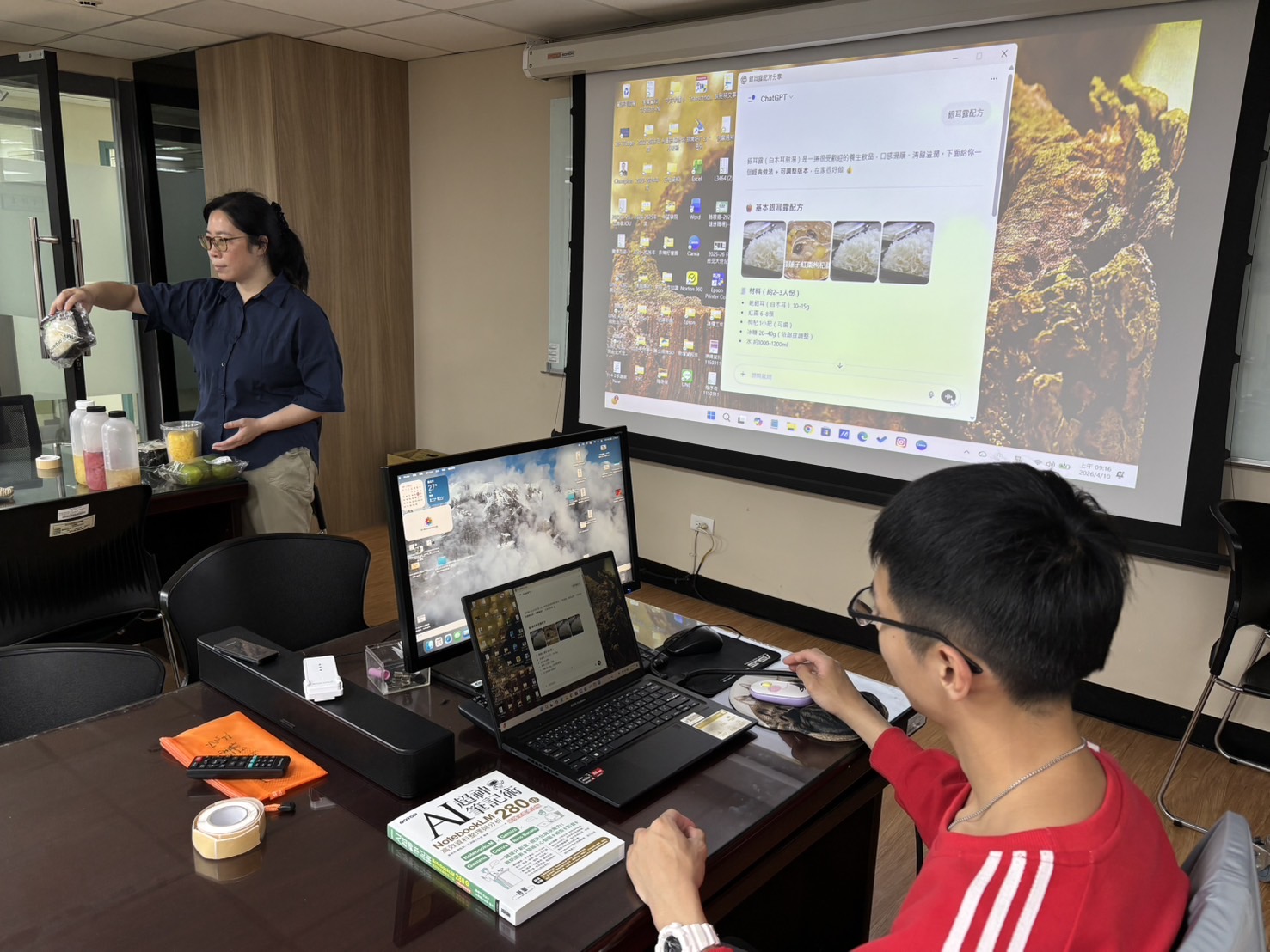 本次課程亮點在於導入適性化的AI科技,引導學員練習使用AI智慧語音與搜尋工具。學員只需透過簡單的指令,就能快速掌握市場流行的餅乾風味,並利用AI輔助優化食譜組合、精確換算食材比例,有效克服資訊理解與計量的門檻。