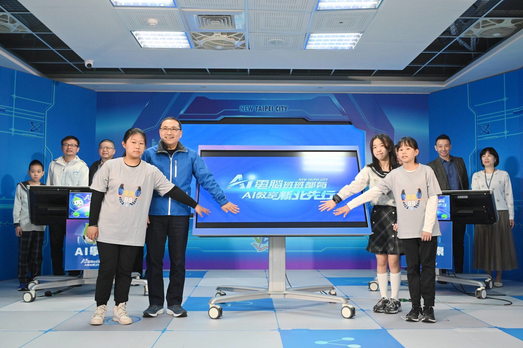 新北市致力推動智慧教室,繼「班班智慧電視」達標後,新北市政府今(31)日在板橋區江翠國小舉辦「AI電腦班班都有、AI教室新北先行」記者會,市長侯友宜宣布再投入5億元經費,逐年汰換全市班級電腦為「AI電腦」,打造全臺最先進的智慧教室,讓每位孩子都能輕鬆擁抱數位世界,快樂迎接AI時代。