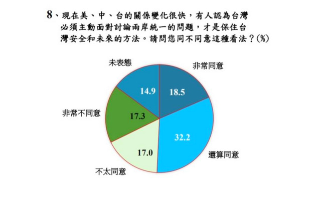 50.7%民眾同意台灣必須主動面對兩岸統一的問題。(照片:民主文教基金會提供)
