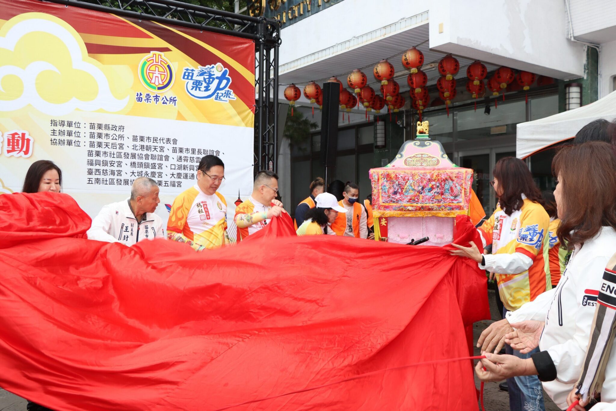 31日苗栗縣副縣長邱俐俐偕同民政處副處長林國竹、文觀局副局長徐建男、立委邱鎮軍特助彭新發、議員許櫻萍、苗栗市長余文忠、苗栗市民代表主席陳仁杰以及苗栗天后宮主任委員林岳爐等各界代表一同出席,共同展現對活動的高度重視與支持。現場氣氛熱烈,各界齊聚的場面更彰顯活動的重要性與地方凝聚力,為即將啟程的苗栗鐵馬進香文化活動增添榮耀與期待。