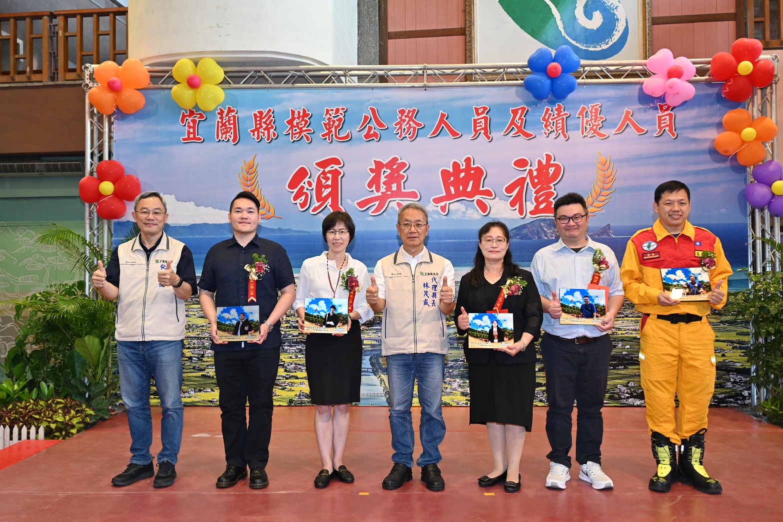 林茂盛表示,宜蘭縣政得以順利運轉,歸功於全體同仁的努力,特別是所有的獲獎人員,無論是在交通建設、民生福祉、環境永續、經濟發展、社會照護及觀光亮點等不同領域,均有相當傑出的表現。而同仁要獲得這個獎項並非易事,除了在工作上展現卓越成果,也常需要犧牲與家人相處的時間,才能獲得這份榮耀,期盼獲獎同仁持續在公務領域發光發熱,創造更璀璨的施政成果,更期許全體同仁能以他們為標竿,共同努力深耕這塊土地,使各項施政穩健發展,讓縣民感受到幸福與安居樂業。