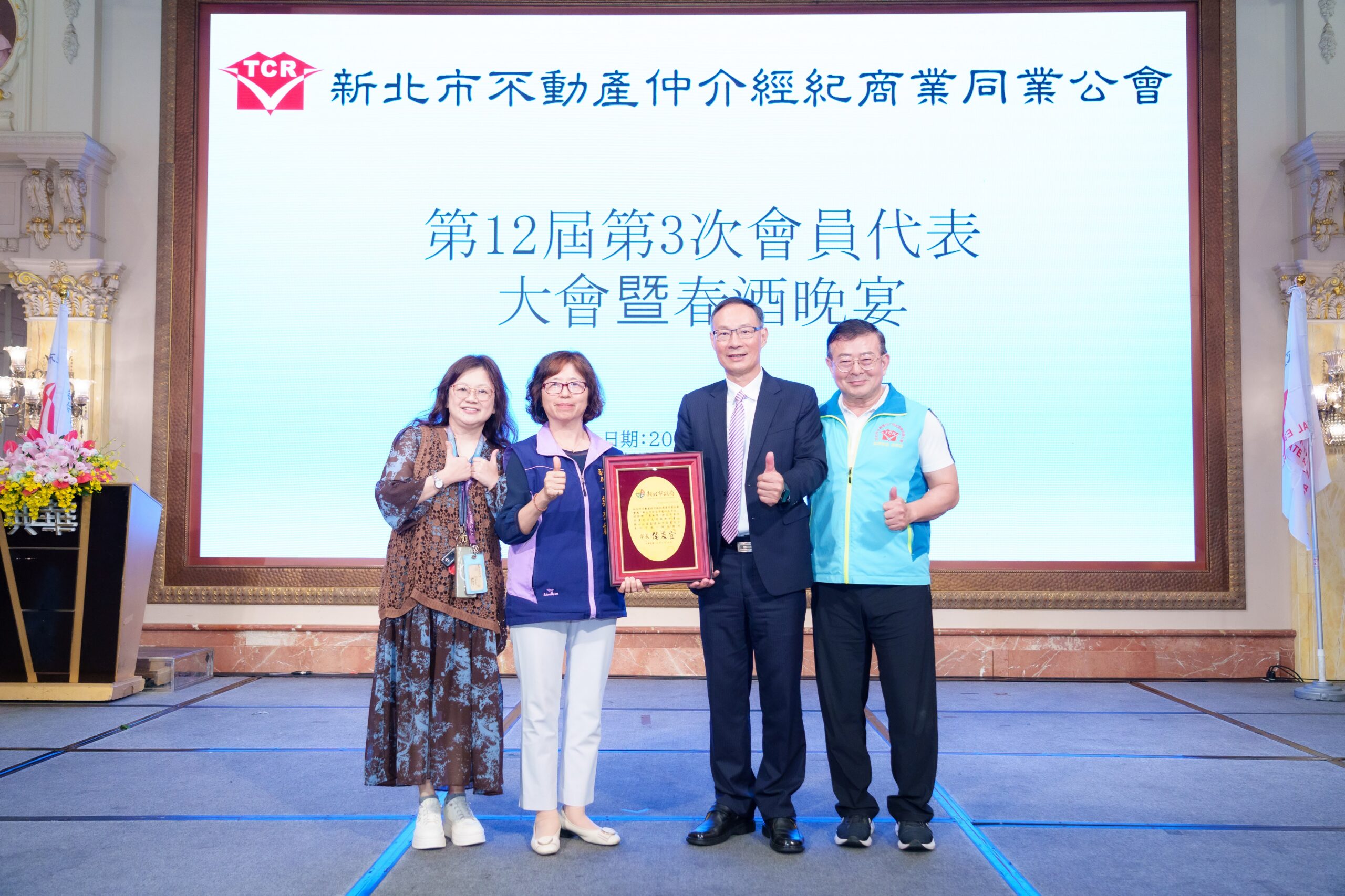 代表侯友宜市長回贈感謝牌給新北市不動產仲介經紀商業同業公會理事長林平川(右2)和副理事長孫啓達(右1)-scaled.jpg)
