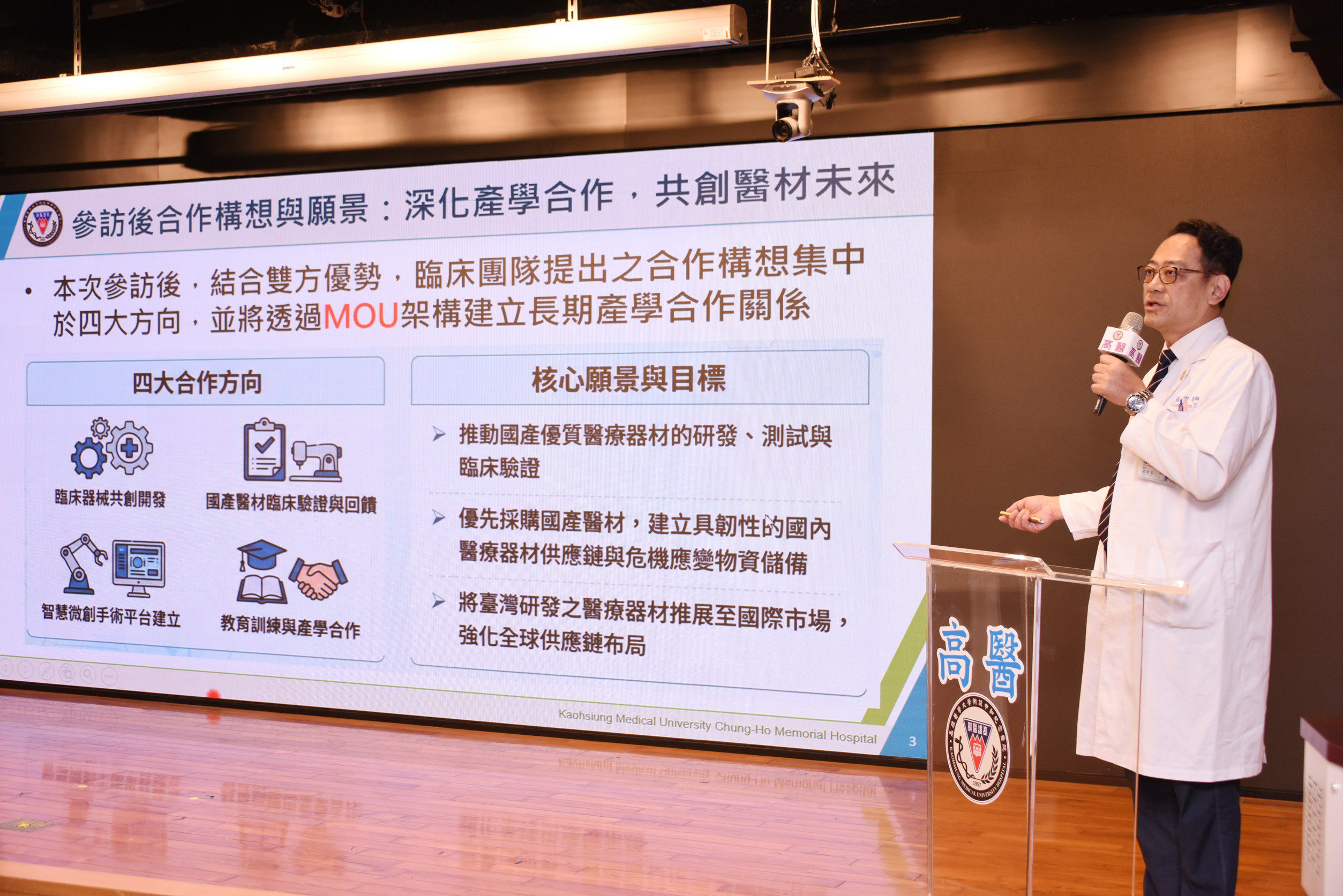 台灣先進代表陳榮健副總經理表示,公司具備從研發到製造的一條龍能力,尤其是腹腔鏡微創手術器械已在國際市場具備高度競爭力。此次與高醫合作,將建立完整臨床驗證與回饋機制,以實證數據驅動產品持續優化,提升品質與安全標準,加速國產醫材導入臨床體系。