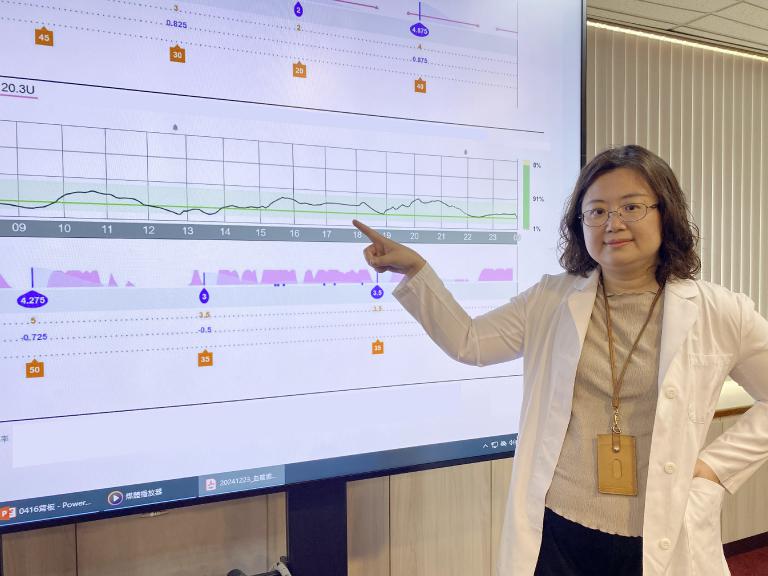 43歲的余小姐於國中時確診第一型糖尿病,經肝腎移植後,為穩定血糖以保護肝腎功能,每天須施打4次胰島素,血糖偏高時還需追加劑量。頻繁扎指尖監測血糖,導致手指疼痛、指尖角質增厚,夜間監控還會打斷睡眠,長年影響生活品質,並帶來沉重的心理壓力。為解決這種困境,改採胰島素幫浦結合連續血糖監測系統,既免去每日多次扎針之苦,糖化血色素更從2023至2024年平均約7.4%,改善至2025年平均約6.8%,達到糖尿病照護建議的控制目標(<7%),有效降低慢性併發症風險,生活品質顯著提升。