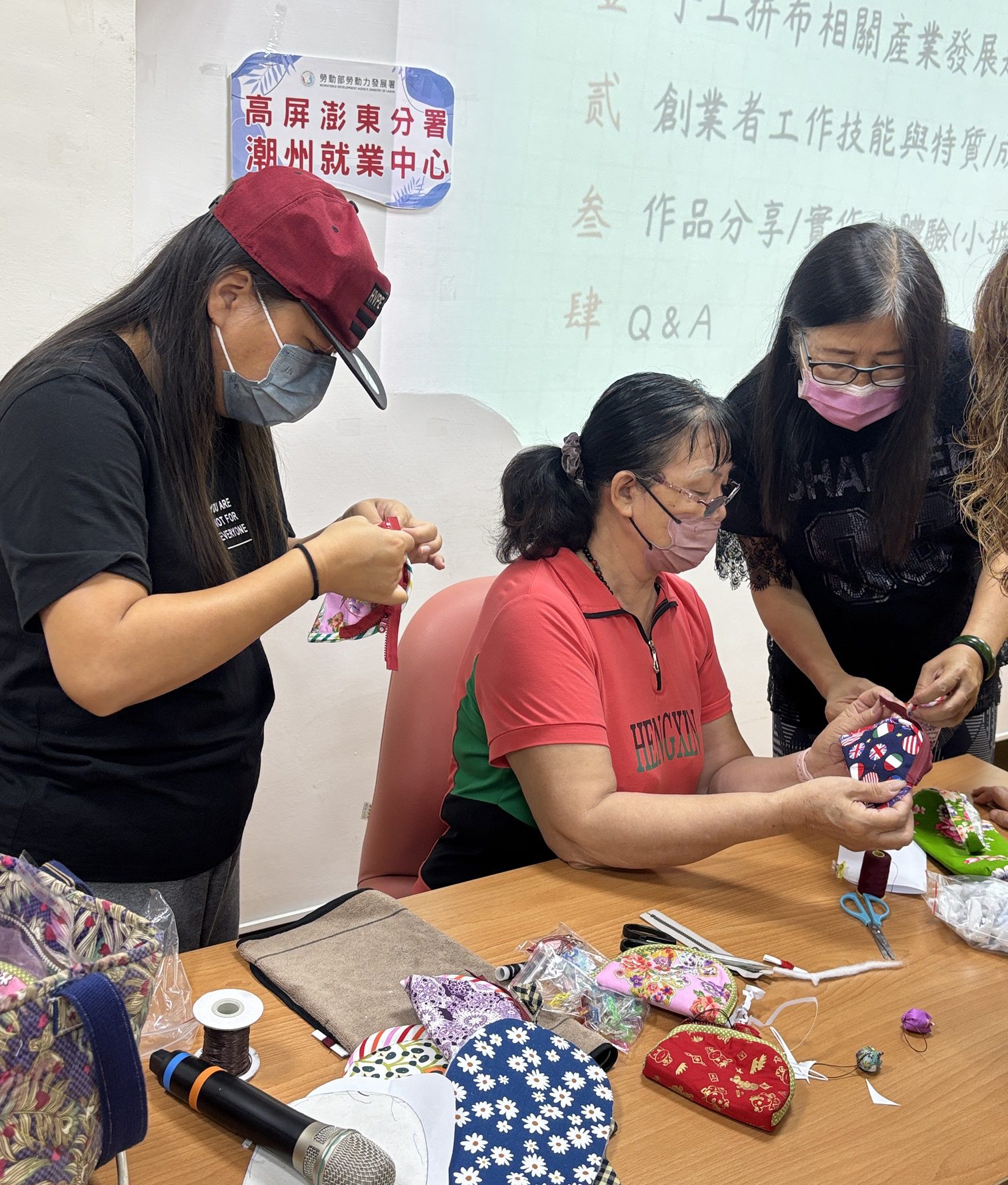 【記者范家豪/潮州報導】 為協助特定對象求職者開拓就業視野並重拾職場自信,勞動部勞動力發展署高屏澎東分署潮州就業中心舉辦「拼貼職涯新色彩」就業促進研習活動。特別邀請被譽為「客家拼布界LV」的「客家手工拼布工作坊」負責人張李金嬌老師現身說法,帶領20名學員從產業趨勢分析到實作體驗,深入探索手工拼布產業的就業市場與微型創業商機。