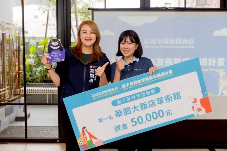 因應家庭親子旅遊與人寵共遊風潮持續升溫,提升旅宿業接待能力與服務品質,高雄市政府觀光局去年起推動「2025高雄市親子與寵物友善旅宿輔導計畫」,透過專家輔導與競賽評比機制,共輔導15家親子友善旅宿及10家寵物友善旅宿。於(4/16)舉辦成果發表會並公布評比結果:親子友善旅宿由「華園大飯店」草衙館榮獲第一名,「義大皇家酒店」第二名,「福容大飯店」高雄第三名;寵物友善旅宿則由「多野樂旅館」奪得第一名,「杉菻行旅」第二名,「義旅舍」第三名。前三名業者分別獲頒新臺幣5萬元、3萬元及2萬元獎金,以肯定其打造友善住宿環境的優異表現。