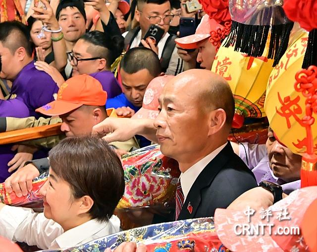 綜合報導/大甲鎮瀾宮媽祖遶境進香17日晚間10點起駕,藍營大咖齊聚恭送媽祖,包括中國國民黨主席鄭麗文、國民黨籍立法院長韓國瑜、副院長江啟臣、台中市長盧秀燕出席送媽祖出廟埕。鎮瀾宮董事長顏清標安排鄭麗文站在神轎前頭,隨後為盧秀燕、韓國瑜扶轎,藍營3太陽都顧及,頗具巧思。 大甲媽祖9天8夜遶境進香祈福,17日晚間10點在三聲起馬炮巨響與哨角聲下揭開序幕。由中國國民黨主席鄭麗文、國民黨籍立法院長韓國瑜、台中市長盧秀燕依序扶著媽祖鑾轎跨出廟門。 ![]() 起駕儀式藍營大咖齊聚,包括韓國瑜、江啟臣、盧秀燕、鄭麗文、國民黨立法院團總召傅崐萁、藍委黃健豪、顏寬恒、楊瓊瓔、花蓮縣長徐榛蔚、新北市長參選人李四川等人恭送媽祖出發。 由於今年遶境進香與苗栗拱天宮白沙屯媽祖遶境時間重疊,大甲媽祖遶境起駕人數與過往有落差,媽祖鑾轎出廟埕前後不到5分鐘,相當迅速,廟方統計,約60萬人次到場恭送媽祖。 大甲媽今年南下遶境進香祈福活動於4月17日深夜10時05分起駕,遶境主題為“善”,起駕後預計凌晨零時能抵達大甲溪畔,第一天駐駕彰化市南瑤宮,沿途駐駕西螺福興宮、新港奉天宮、北斗奠安宮、彰化市天后宮、清水朝興宮,最後一天4月26日回鑾鎮瀾宮。( 中評社)