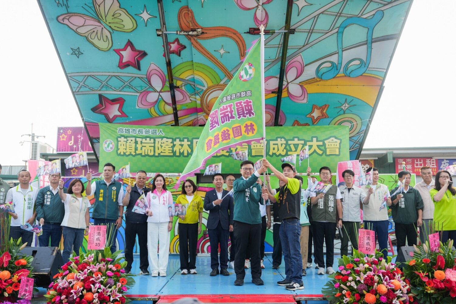 除了由立法委員林岱樺、許智傑、李昆澤、高雄市議長康裕成全程陪同並助講推薦。此外,前高雄縣長余政憲、前議員韓賜村、市議員李雨庭、何權峰、郭建盟、黃文益、黃文志、陳慧文、李順進,市議員參選人洪村銘、張耀中、蔡秉璁、尹立、蘇致榮、黃敬雅、吳昱鋒,後援會長洪進財及大高雄里長聯誼會總主席張宇讚率領成員皆上台表達支持;活動中也進行授旗儀式,眾人高喊「賴瑞隆當選」口號,場面熱鬧、氣勢滿滿。