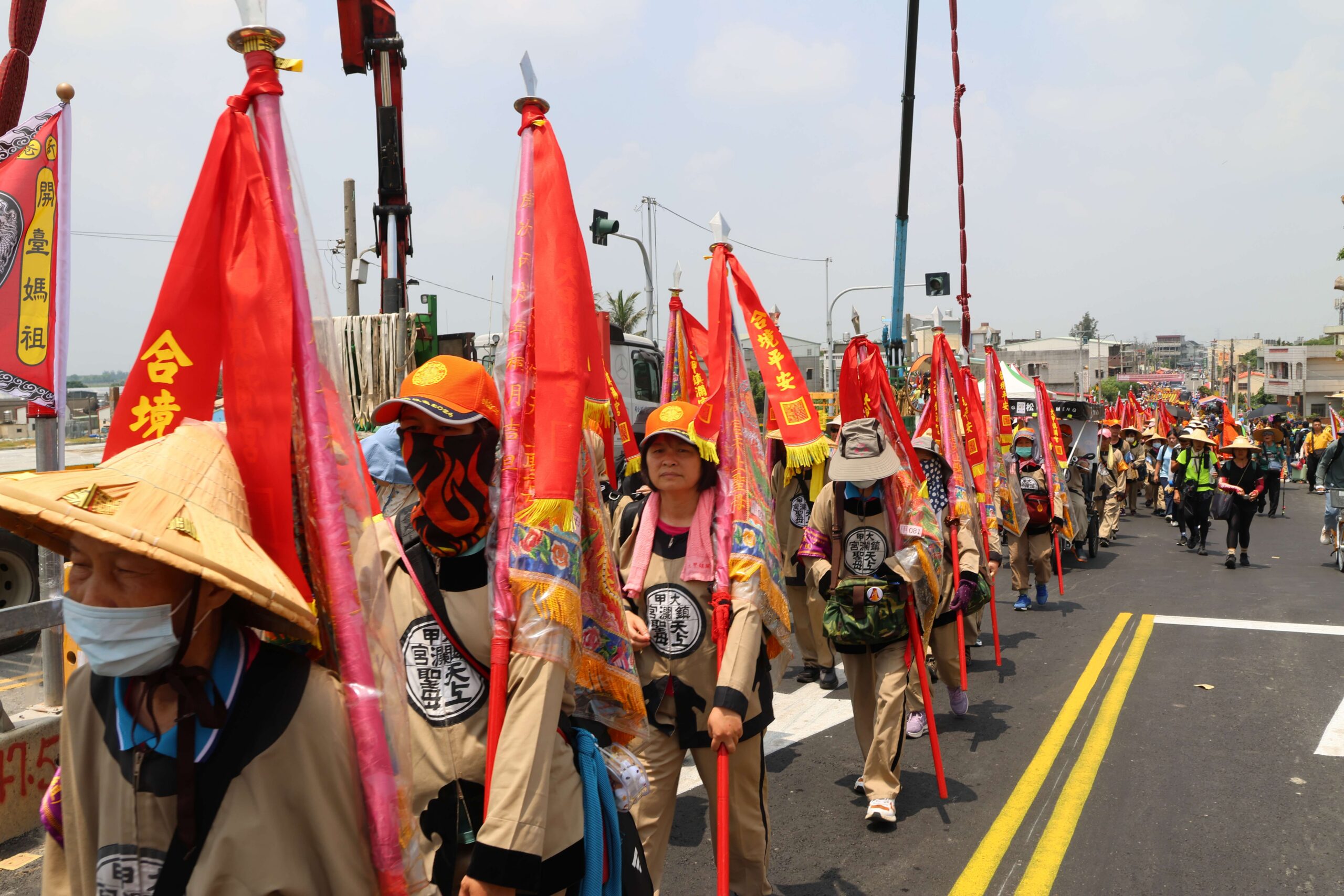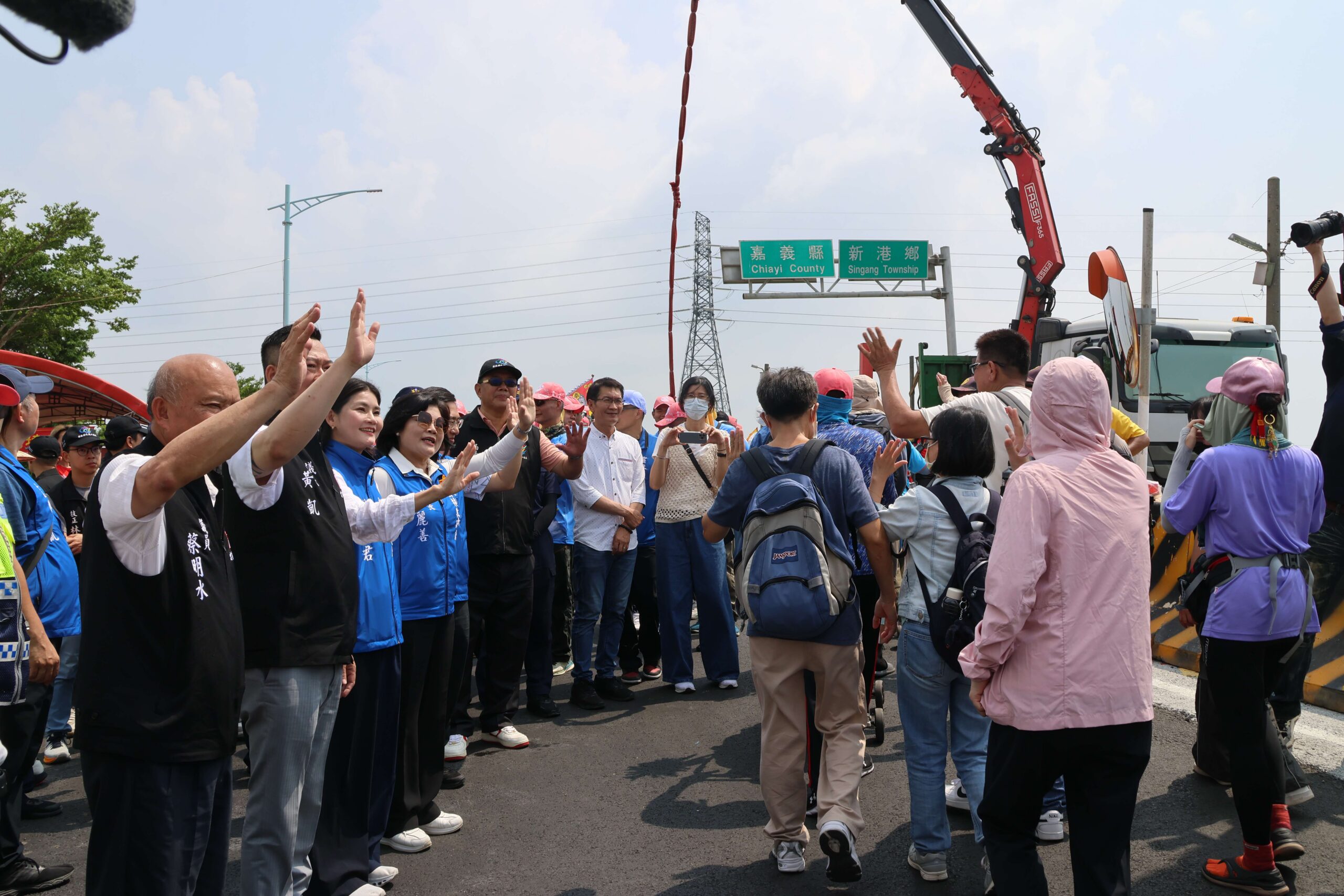 大甲媽祖鑾駕及香燈腳們,順利走過新崙子大橋,前往目的地嘉義奉天宮。