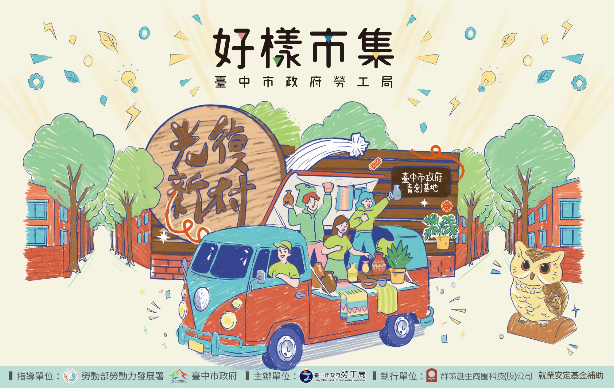 為協助青年實現創業夢想並展現專業職能培訓成果,台中市政府勞工局將於今(115)年4月25、26日(六、日)在霧峰光復新村熱鬧舉辦「好樣市集」暨「職業訓練成果展」。此次活動特別選在充滿歷史故事感與人文氣息的光復新村,將青年的創業能量與學員數百小時的受訓成果化為一場盛大的嘉年華。
