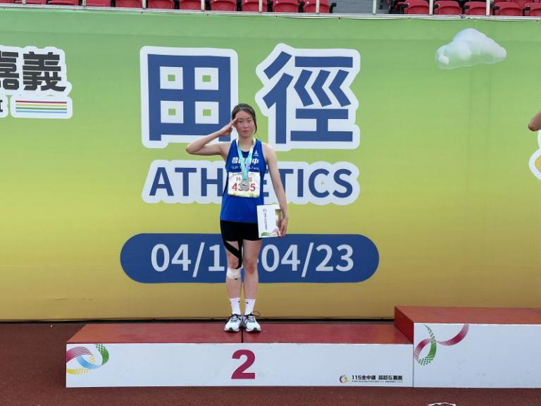 田徑場上,仁愛國中彭采緁持續穩定發揮,在國女組1500公尺決賽中,她採取領跑策略,全程維持穩定節奏拉開差距,面對末圈對手的強力追擊,彭采緁展現充沛體力與爆發力,順利衝線摘下金牌。
