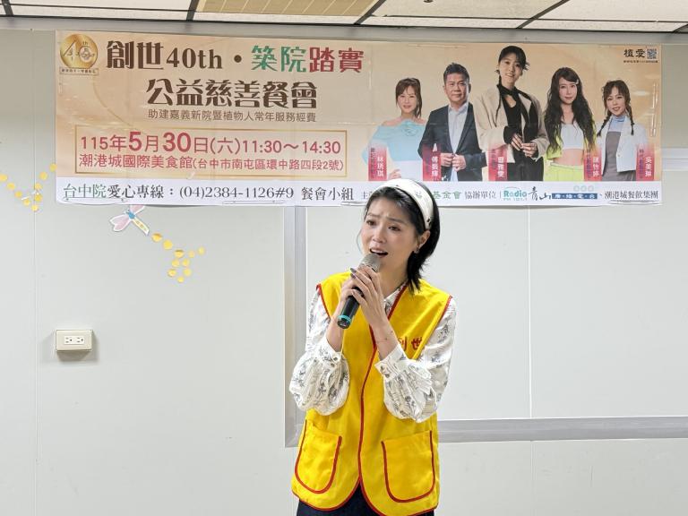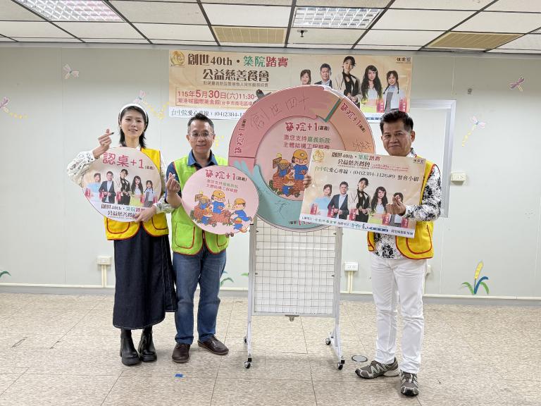 創世台中院陳韋龍院長表示,當初台中院是在全台愛心民眾及企業的捐助下才順利建成,為籌募嘉義新院建院經費,台中院將舉辦「創世40 築院踏實」公益音樂餐會,截至目前距離40餐桌尚有9成餐桌亟待認助。愛心餐桌每桌15,000元可10人用餐、餐券每張1,600元,也可以二次公益轉捐弱勢家庭使用,一份愛心兩份關懷。除了美食佳餚外,現場還有藝人歌手曹雅雯、傅振輝、陳怡婷、吳美琳、林琇琪等人為愛獻唱。期盼企業、社團及社會大眾能踴躍認助餐桌/券,幫助嘉義新院順利建成。愛心專線(04)2384-1126#9餐會小組;劃撥帳號:2202-2328 戶名:創世基金會(備註”愛心餐會”)