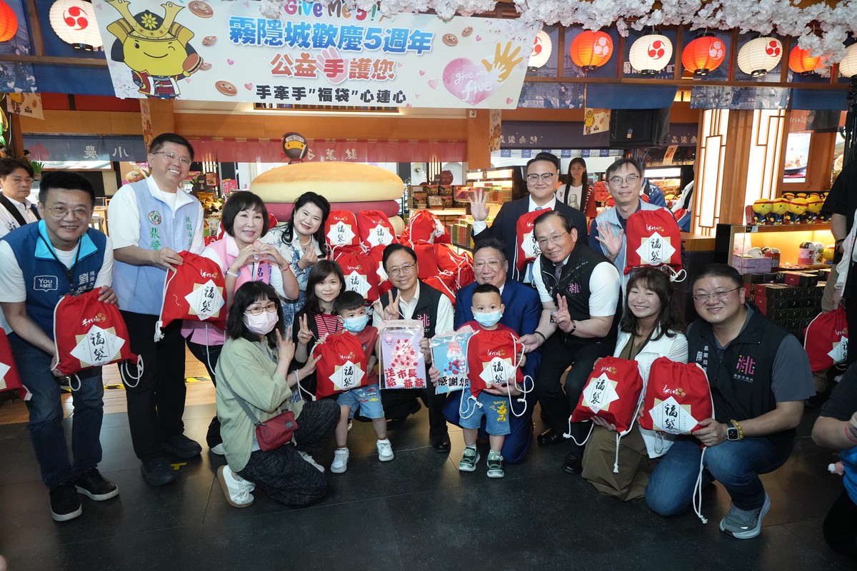 活動由桃園美好庇護工場庇護員工組成的「美好太鼓團」熱力開場,磅礡鼓聲象徵勇氣與希望,呼應「Give Me Five」主題。同時,陳世洋城主與張善政董事長於現場還親自發放福袋予桃園安置孩童,安置孩童亦親手獻上感謝卡,表達真摯心意。今年福袋內容除了有手信霧隱城的多項好禮,更結合龍潭的名人堂花園大飯店贊助的禮券和多項用品等,將隨機放入福袋中,為活動增添驚喜與歡樂。